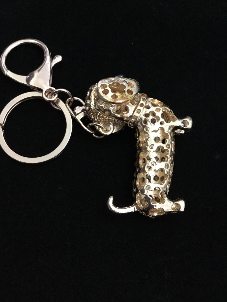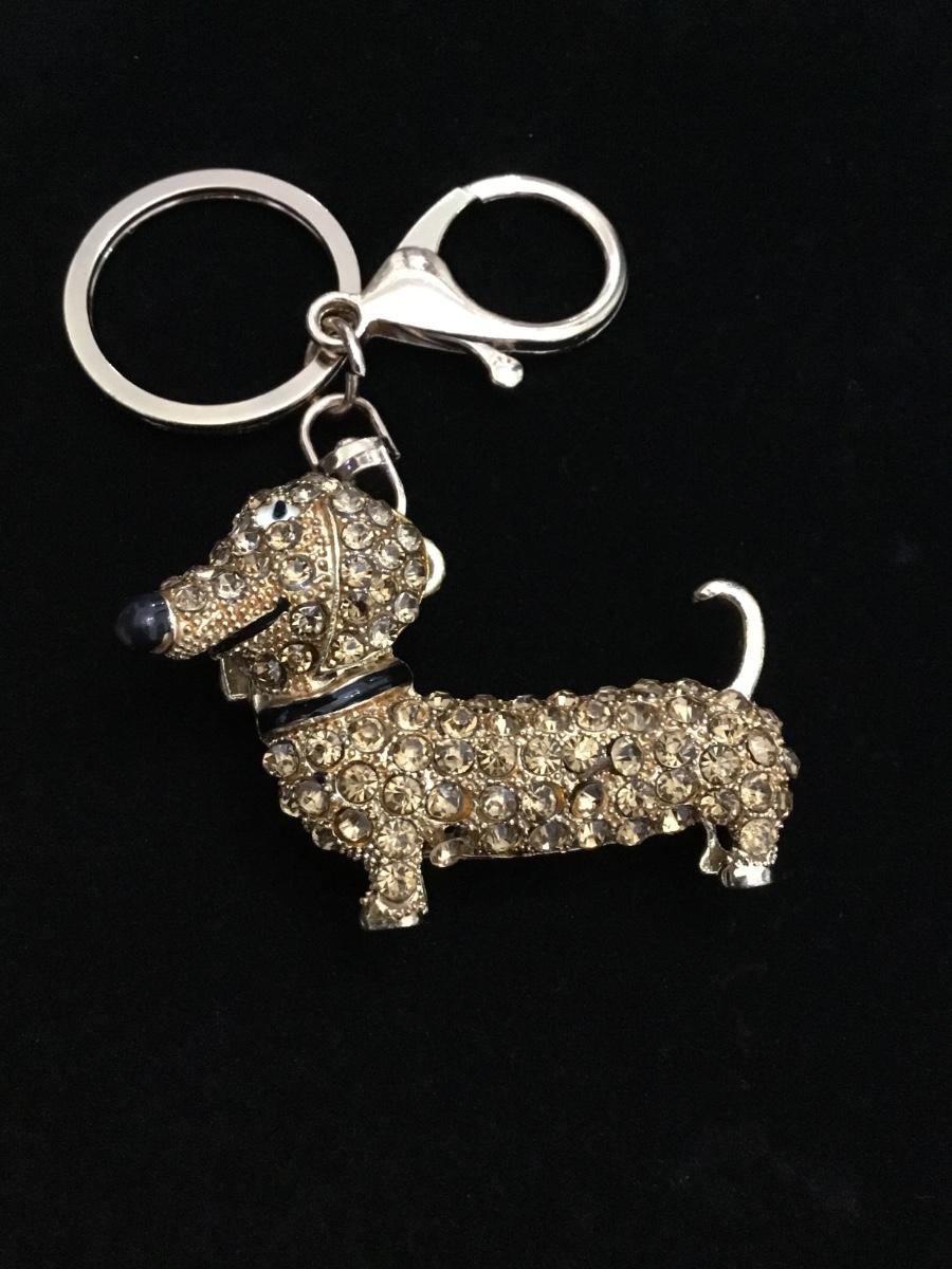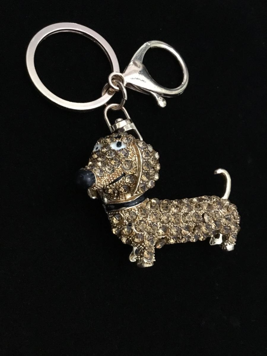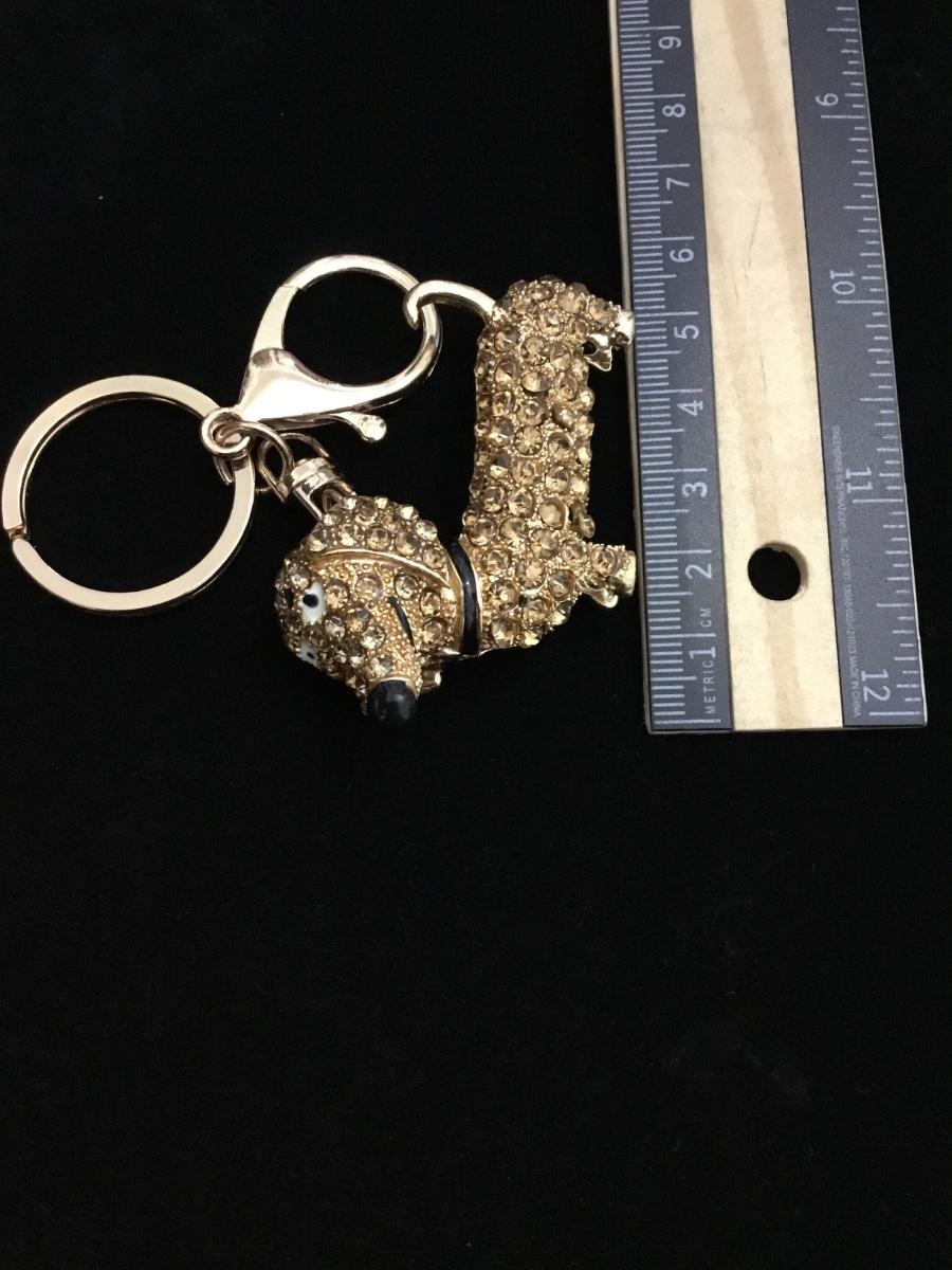 Gold toned rhinestone covered wiener dog keychain