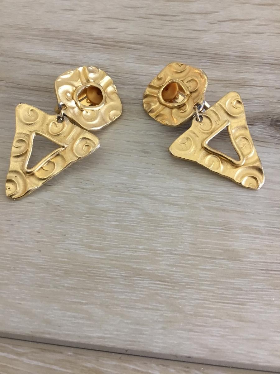 Gold toned triangle statement clip on earrings
