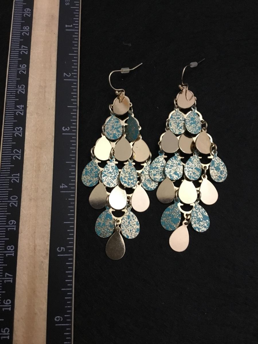 Gold toned, turquoise, gold sparkly, embellishment drop dangle statement earrings