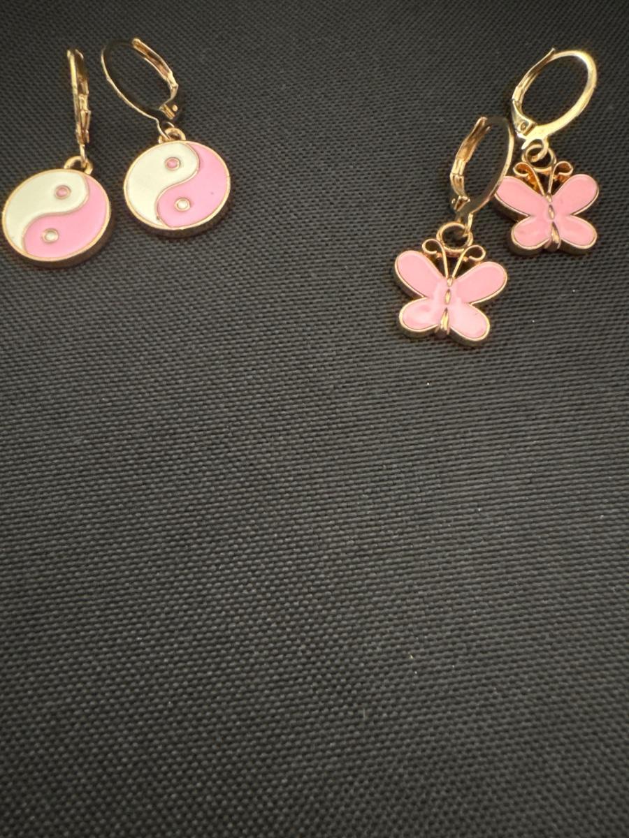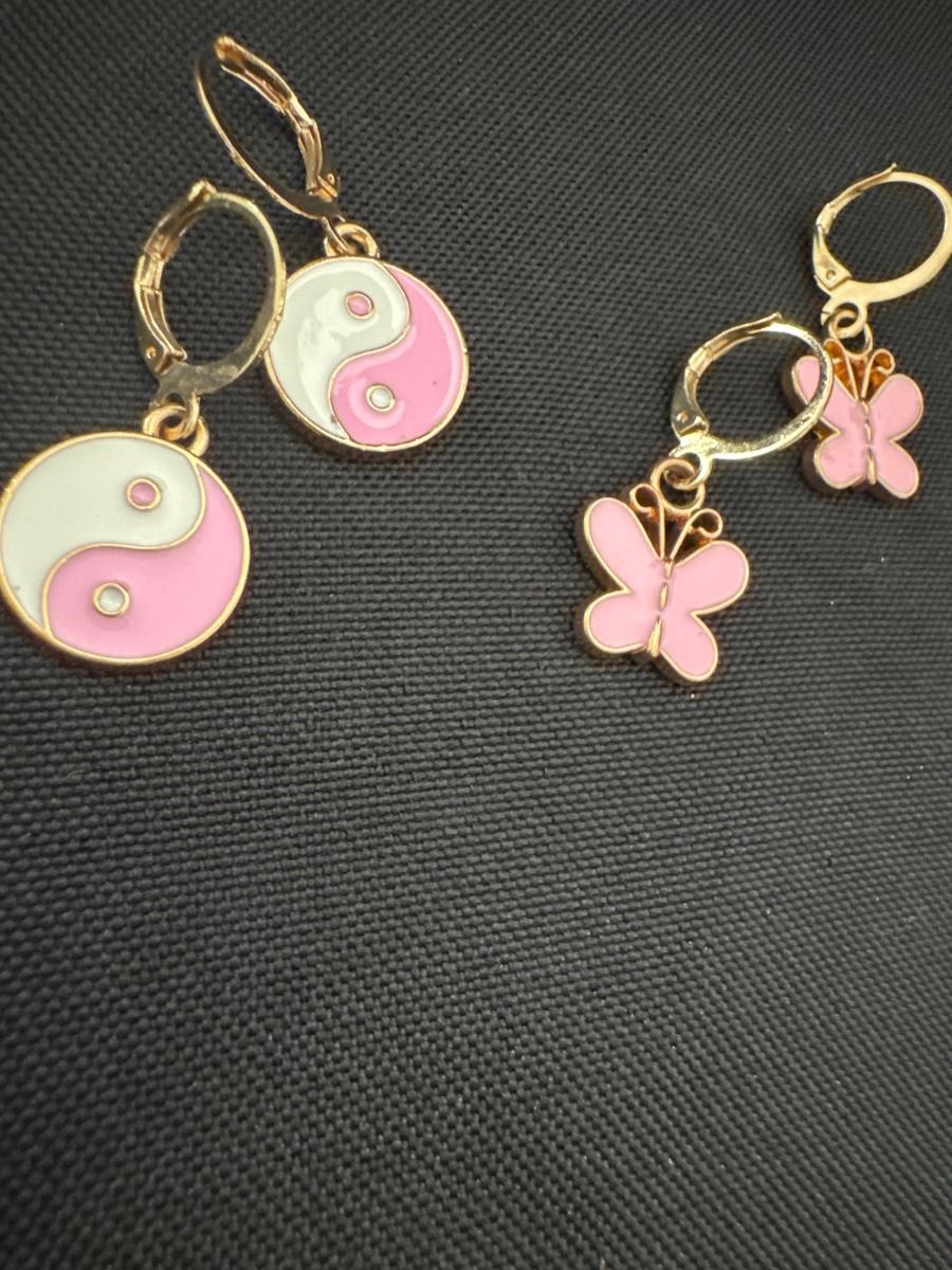 Gold toned with enamel butterfly, and yin yang dingle earrings