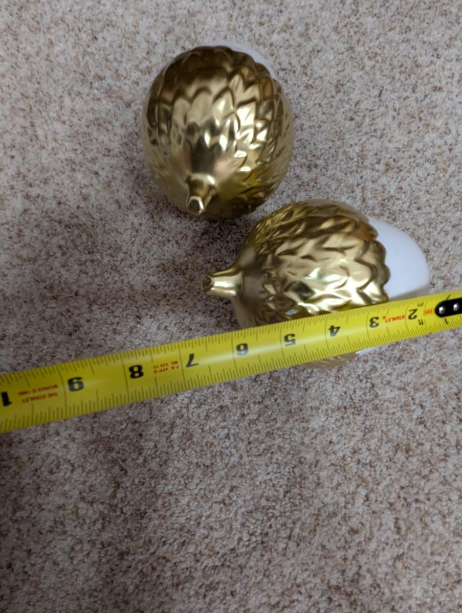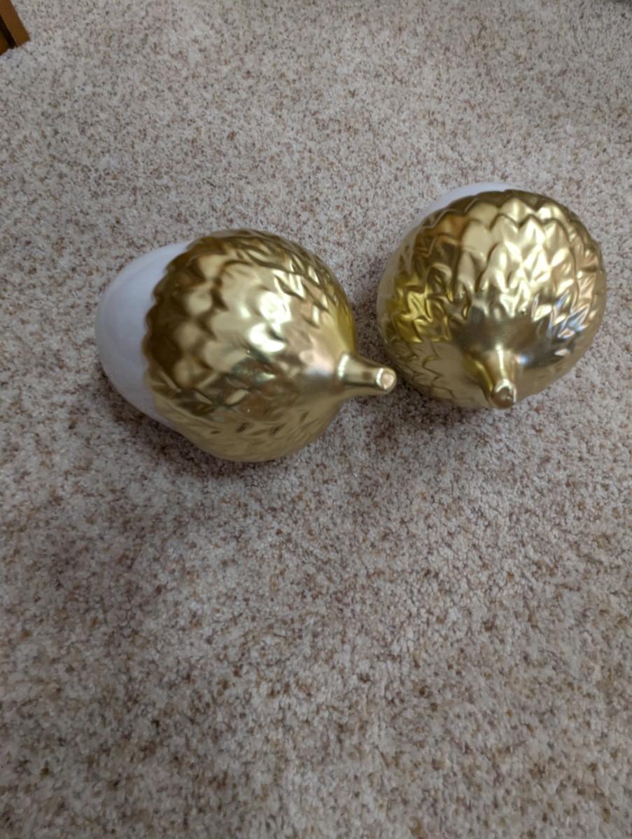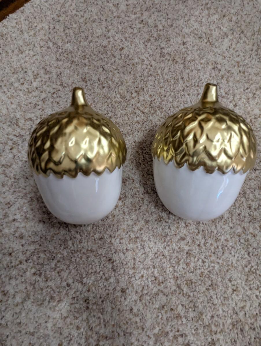 Gold Topped White Ceramic Acorn Bookends Approx 6"