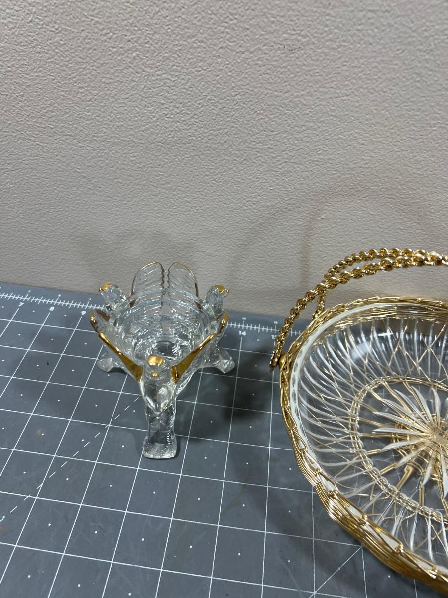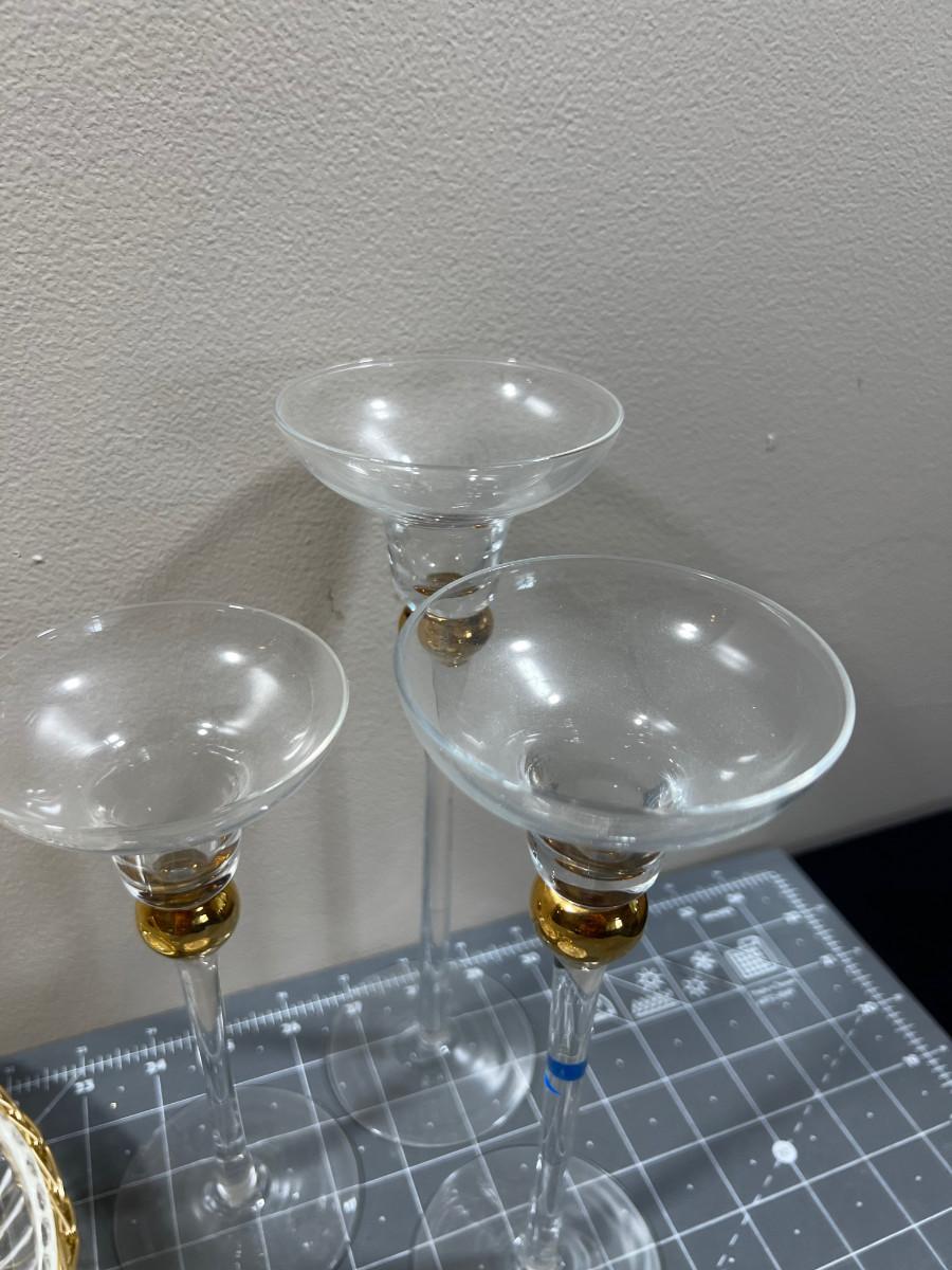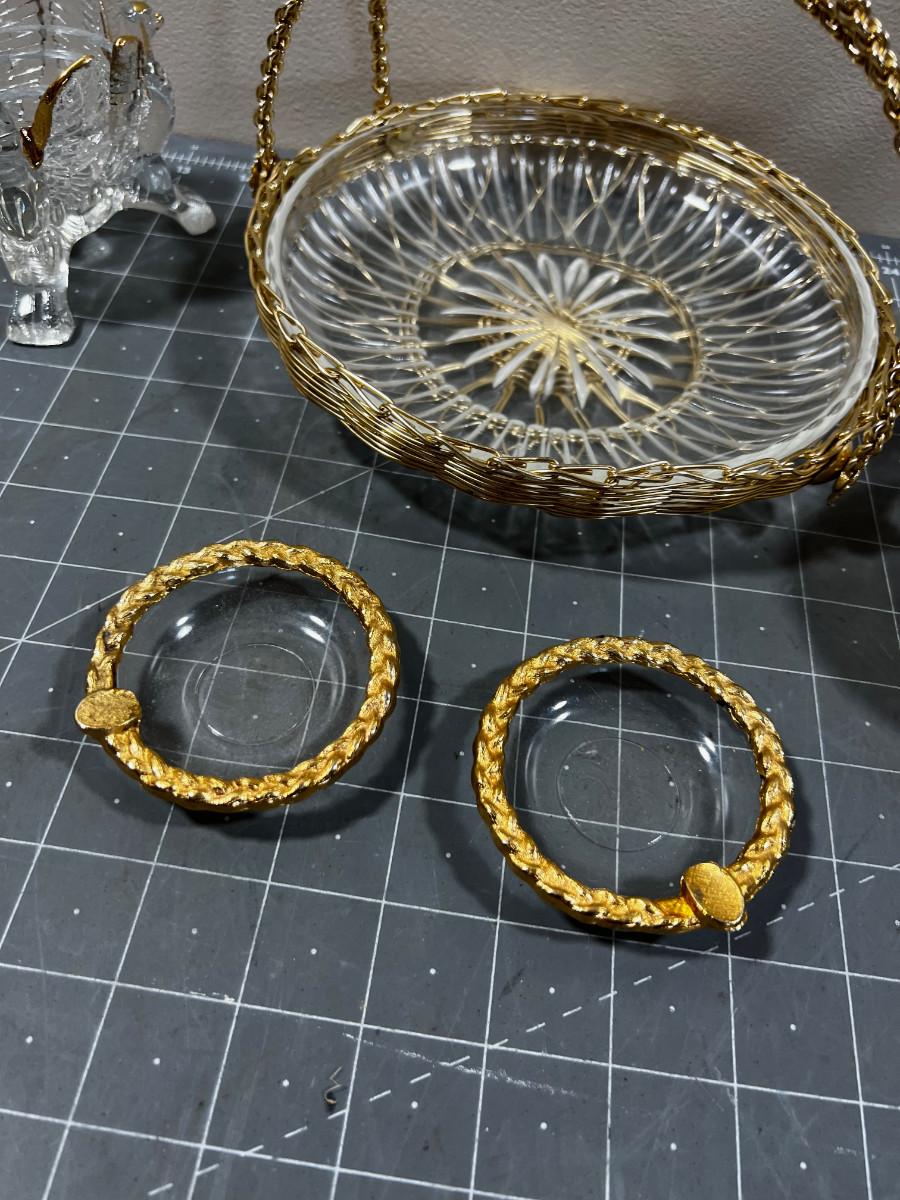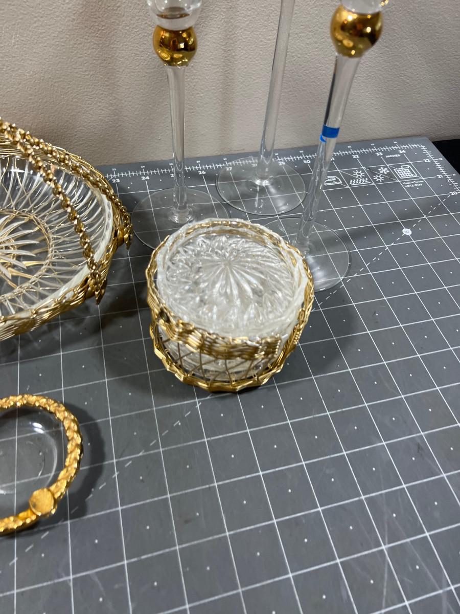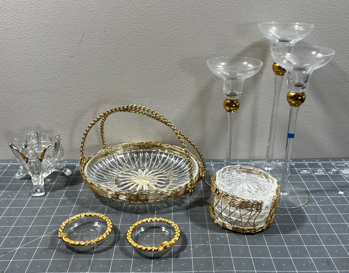 Gold Trim and GLASS: Ashtray, Candle Holder, Coasters