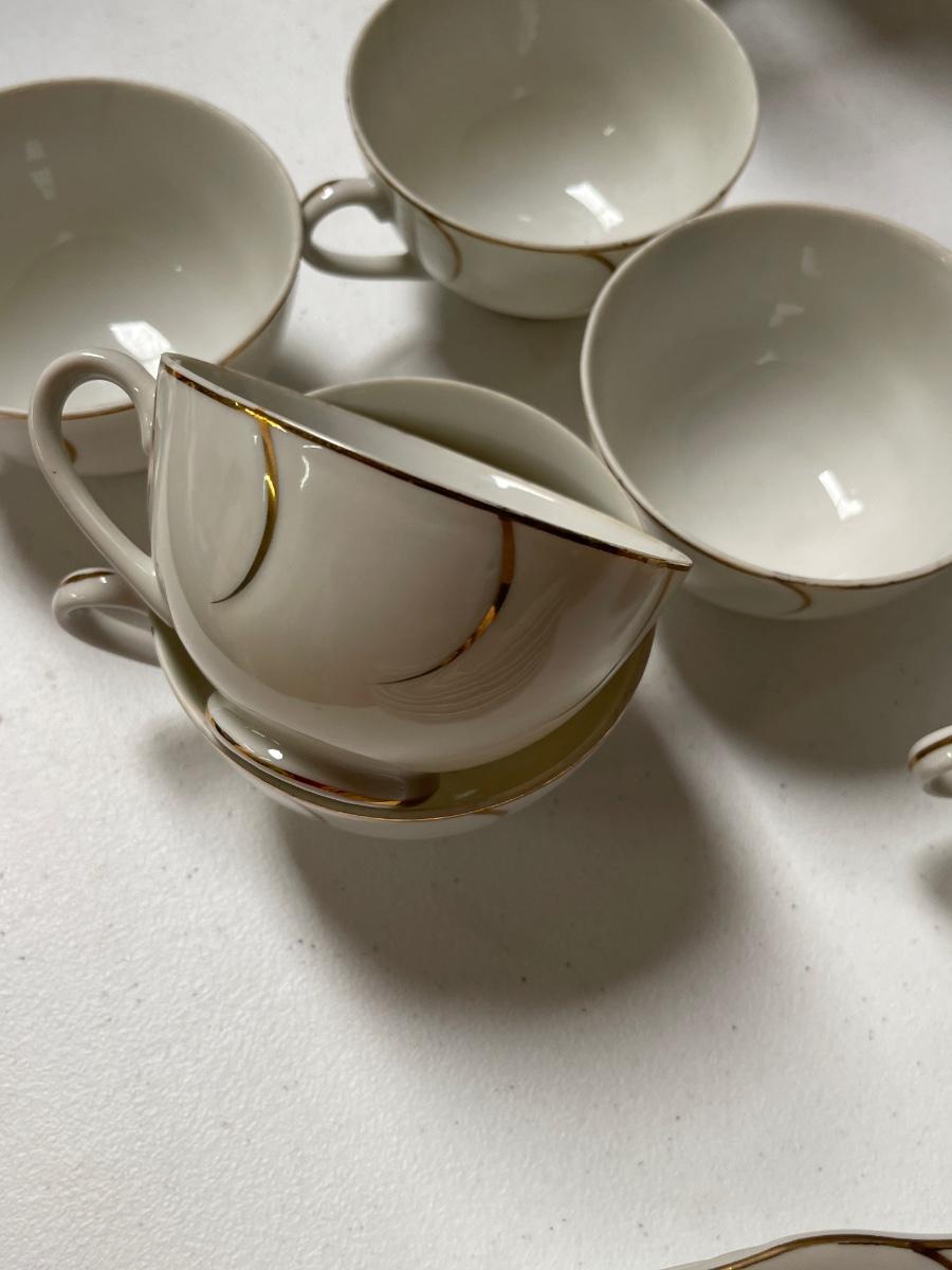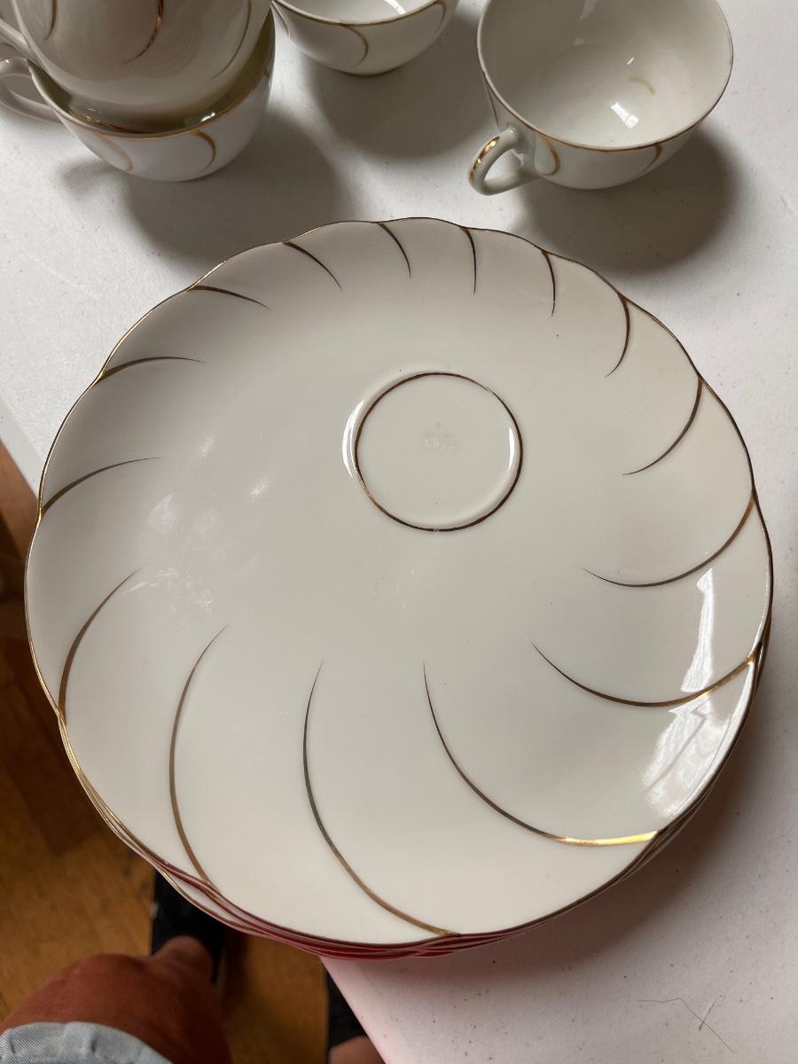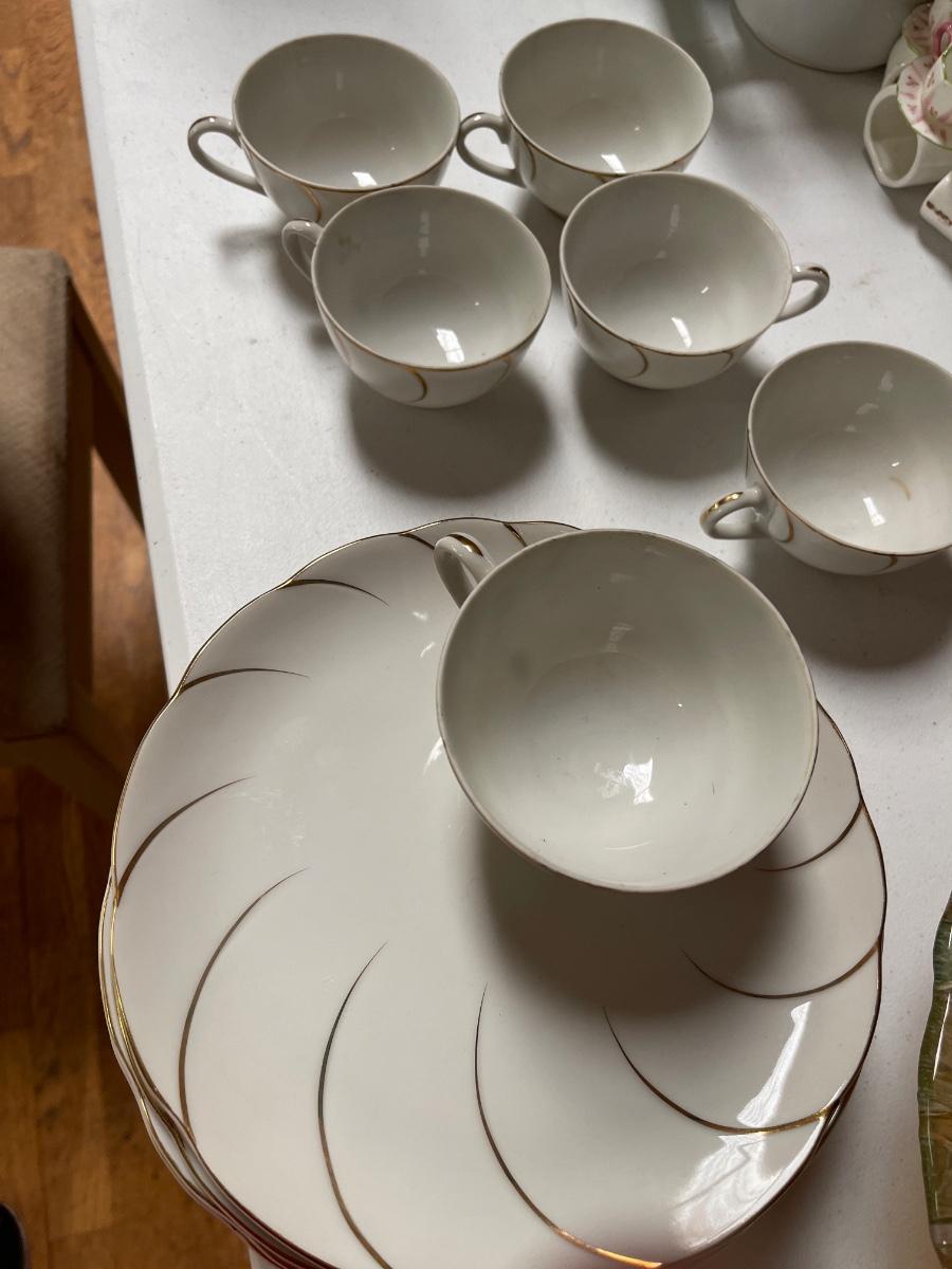 Gold Trimmed Shell Porcelain Snack Set, 6 Piece Place Setting