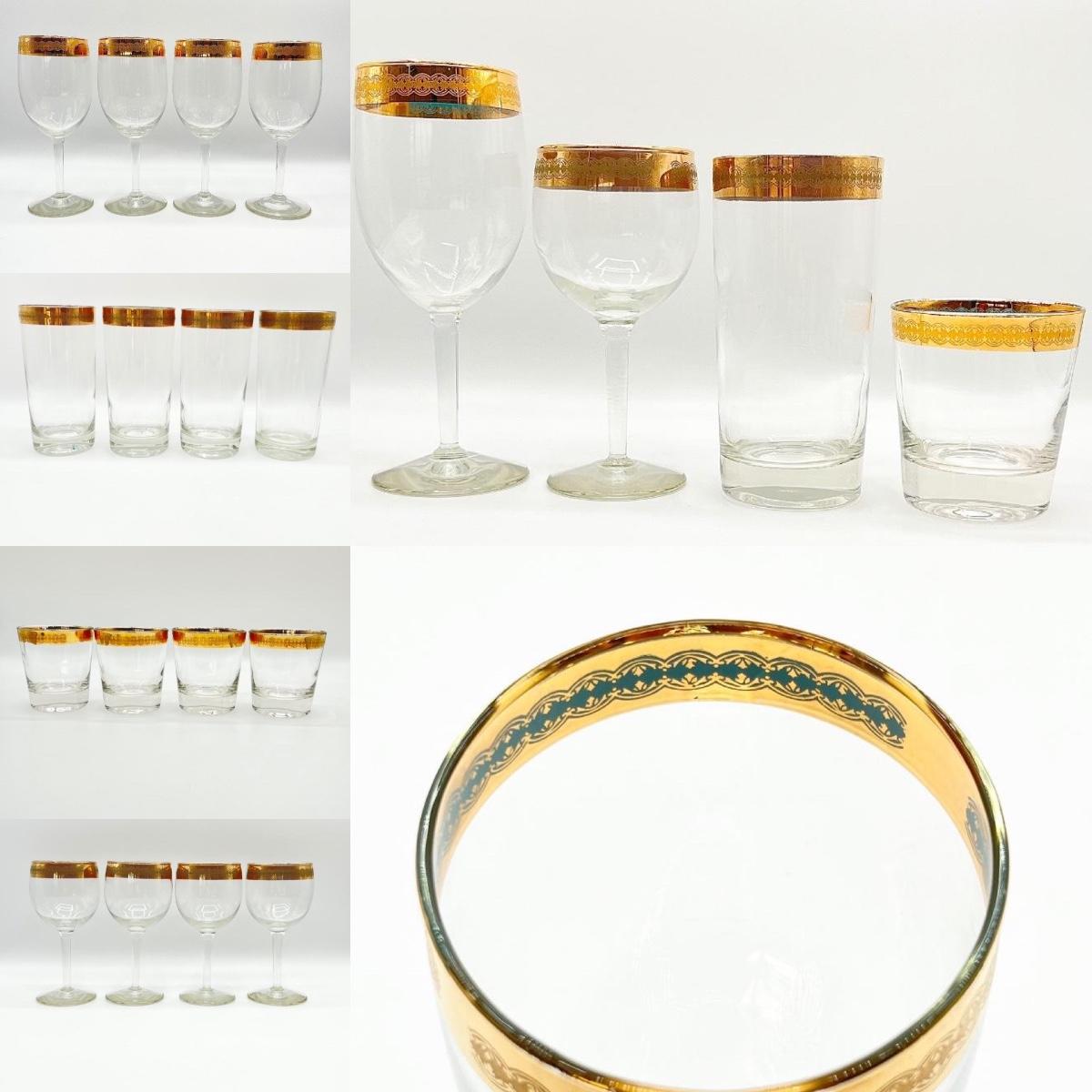 16 Pieces Includes = (4) wine 5 3/4” ~ (4) 7” ~ (4) old fashioned 3 1/4” ~ (4) tumbler 5.5” ~ (4) Stemmed Water