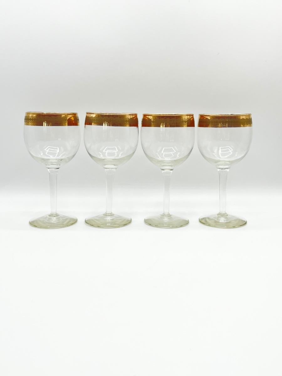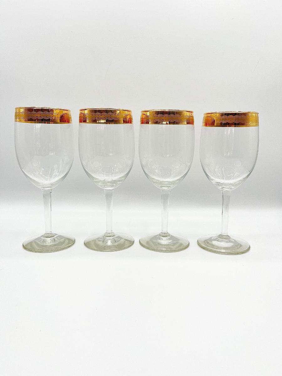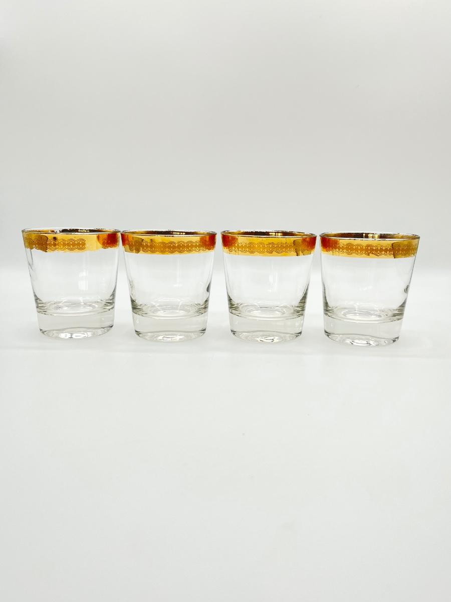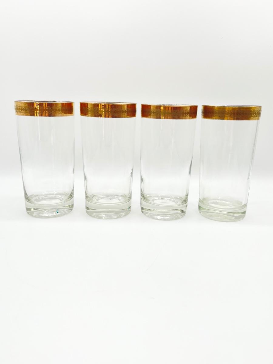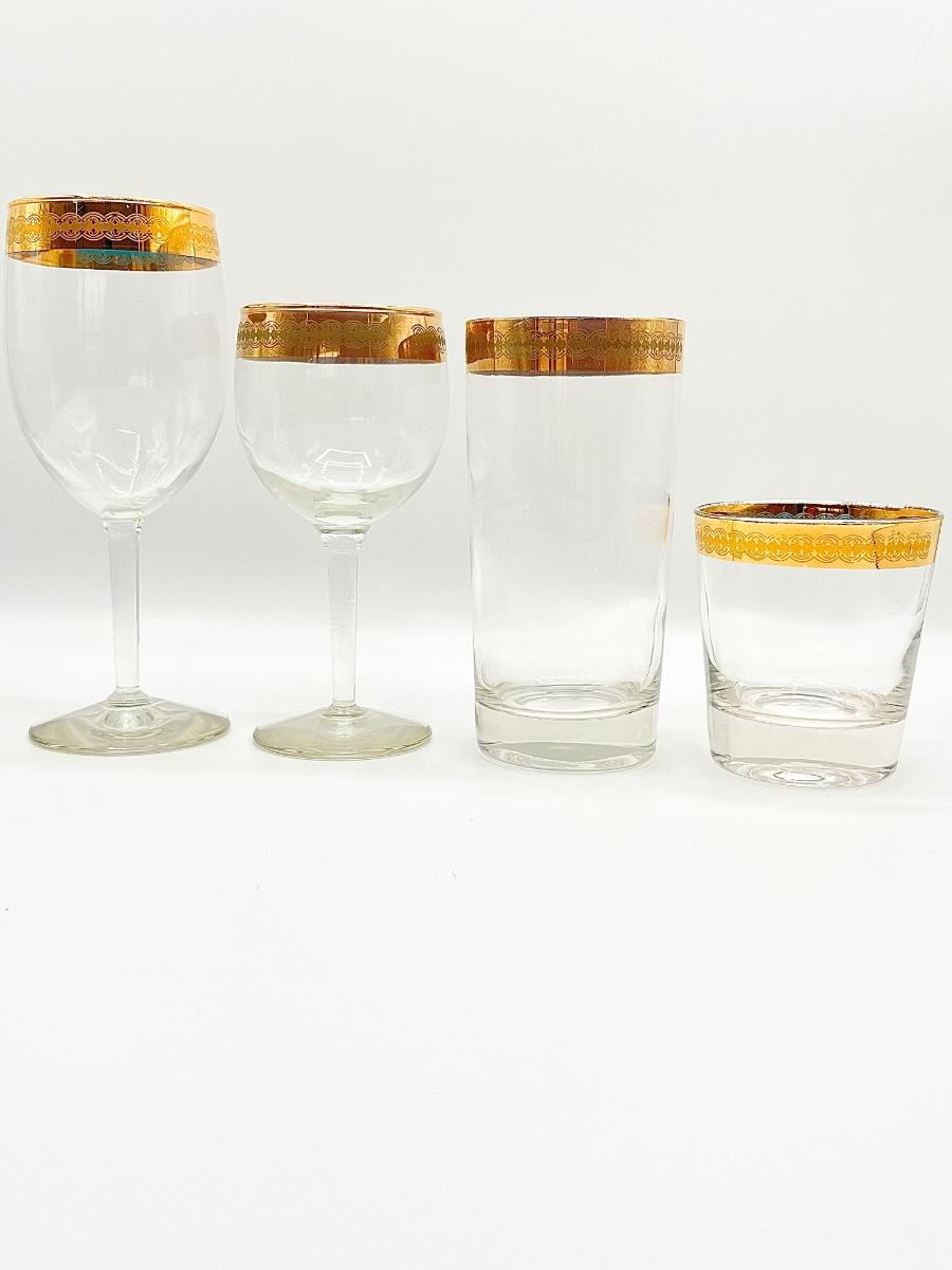 MCM Gold & Turquoise Banded Glassware ~ 4 Piece Place Setting For 4