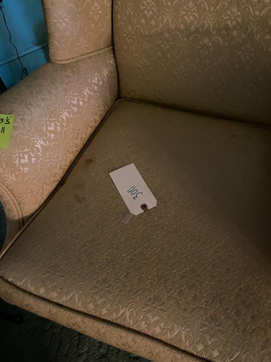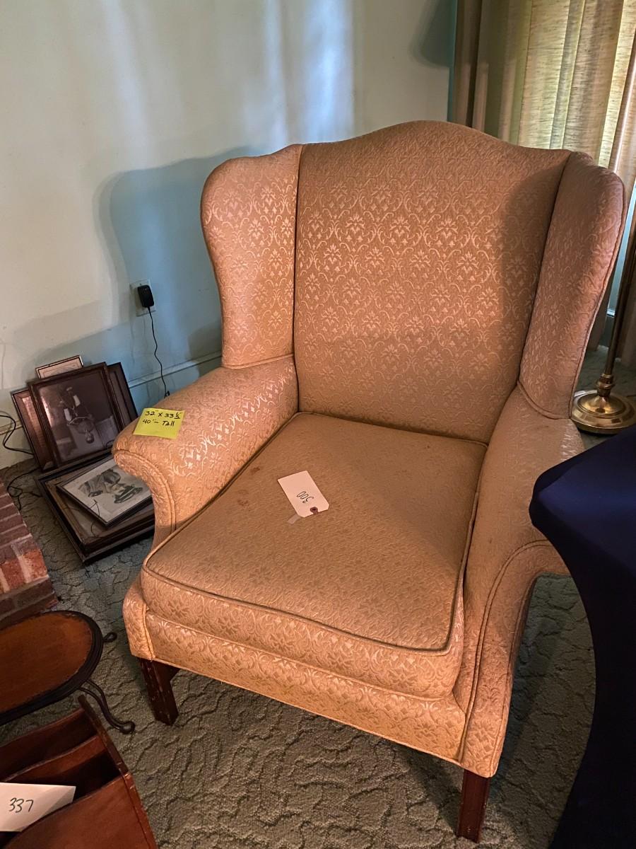 LOT 300 Gold Upholstered Wing Back Chiar, Needs New Upholstery