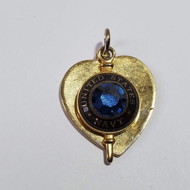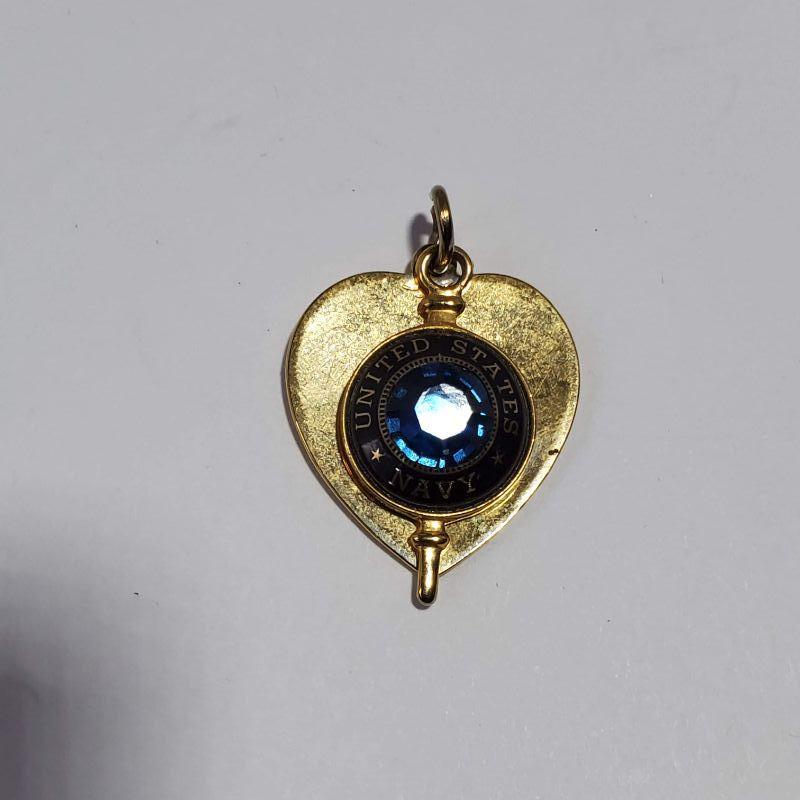 Heart-shaped Gold Mini Pendant United States Navy w/ Blue Stone