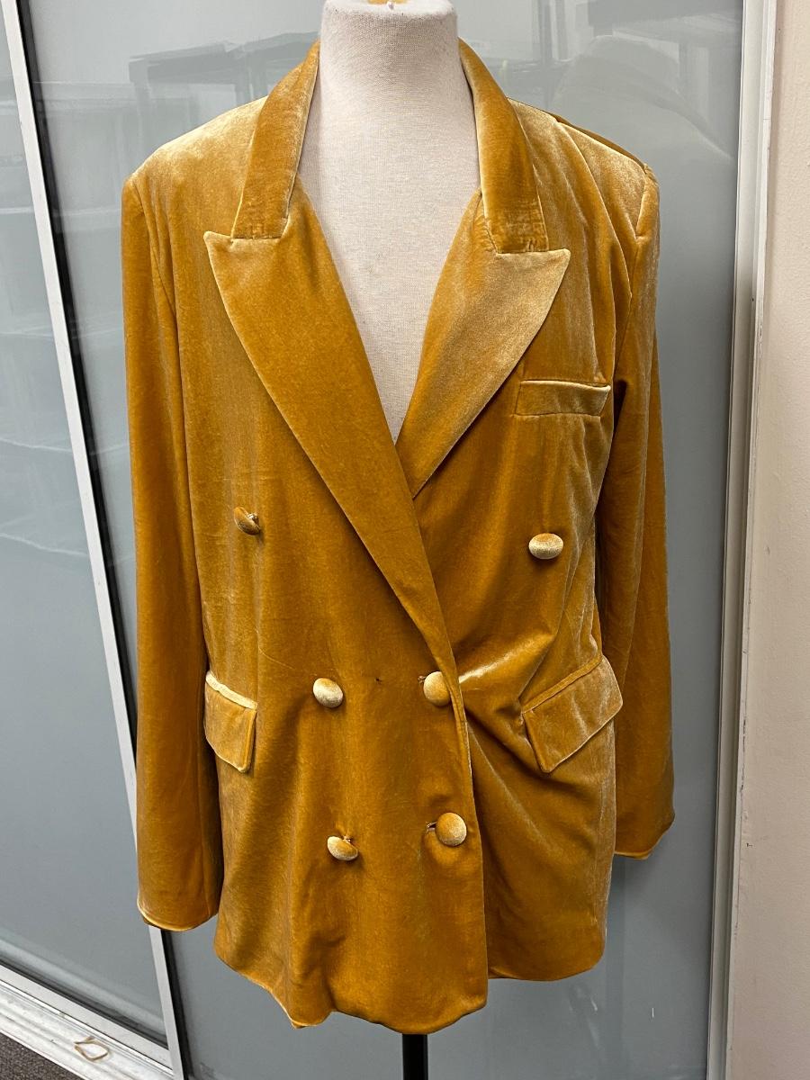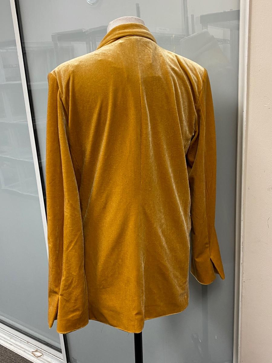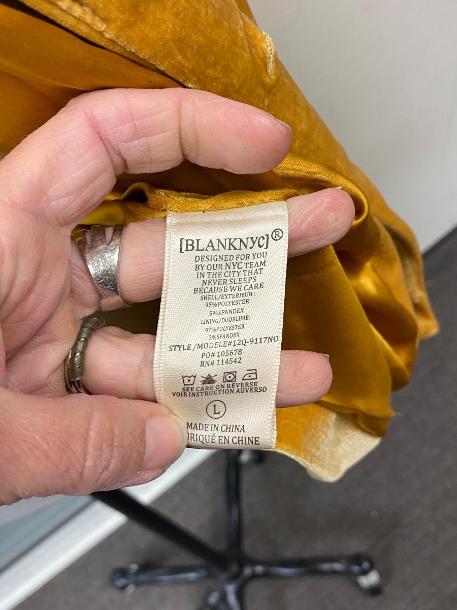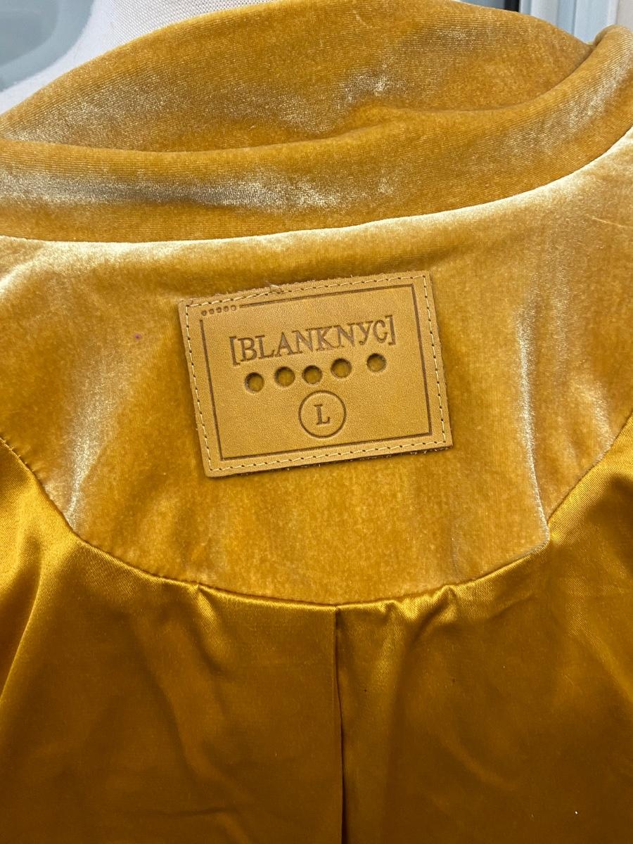 Gold Velour BlankNYC Lightweight Blazer Jacket. In previous worn condition. A couple small speck spots on the front. Size Large.