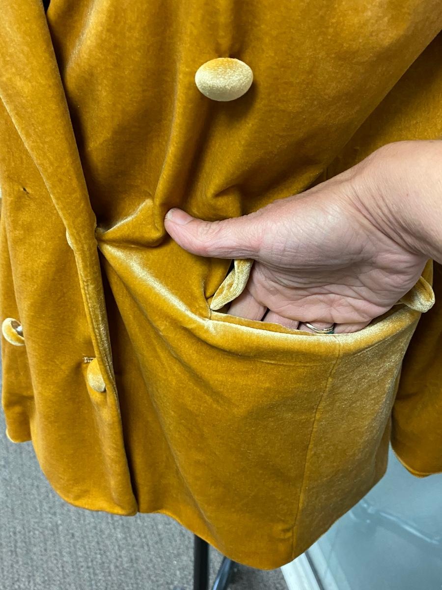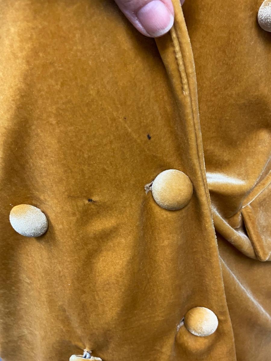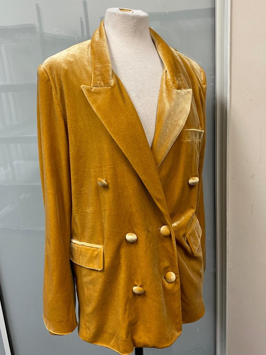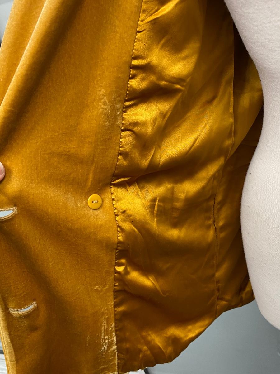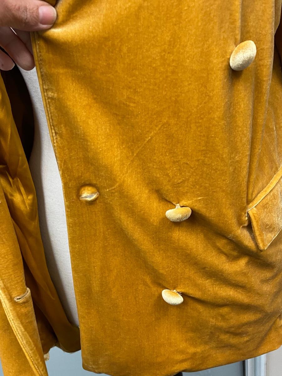 Gold Velour BlankNYC Lightweight Blazer Jacket. In previous worn condition. A couple small speck spots on the front. Size Large.
