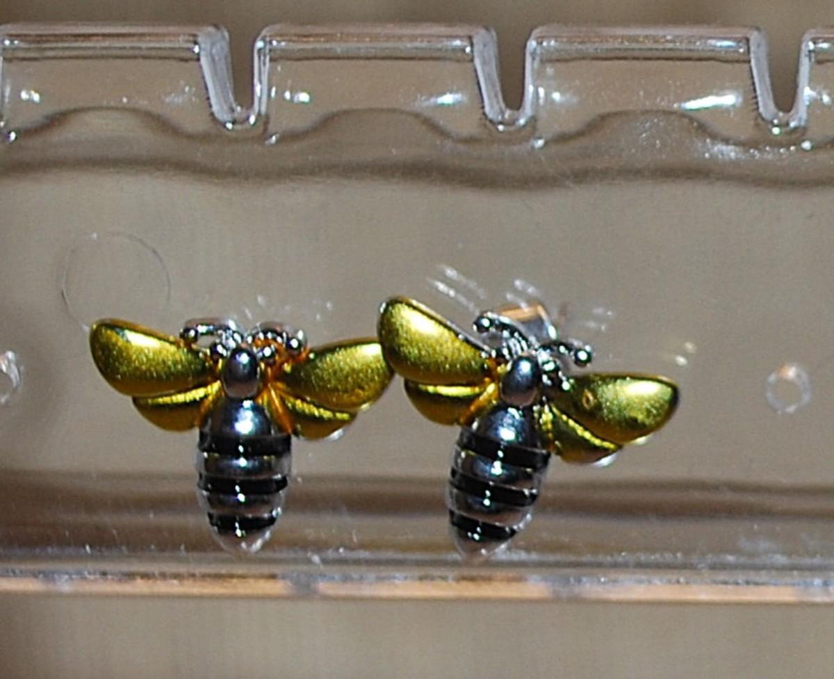 "Gold Wing Bee" Earring Set (¾") with Black & Silver Body and a Stud Style Clasp