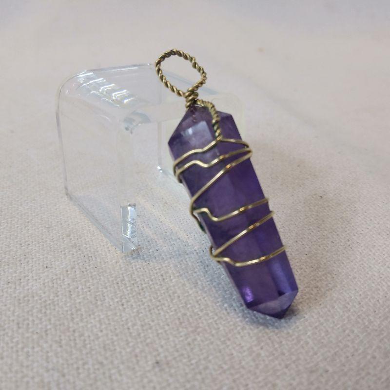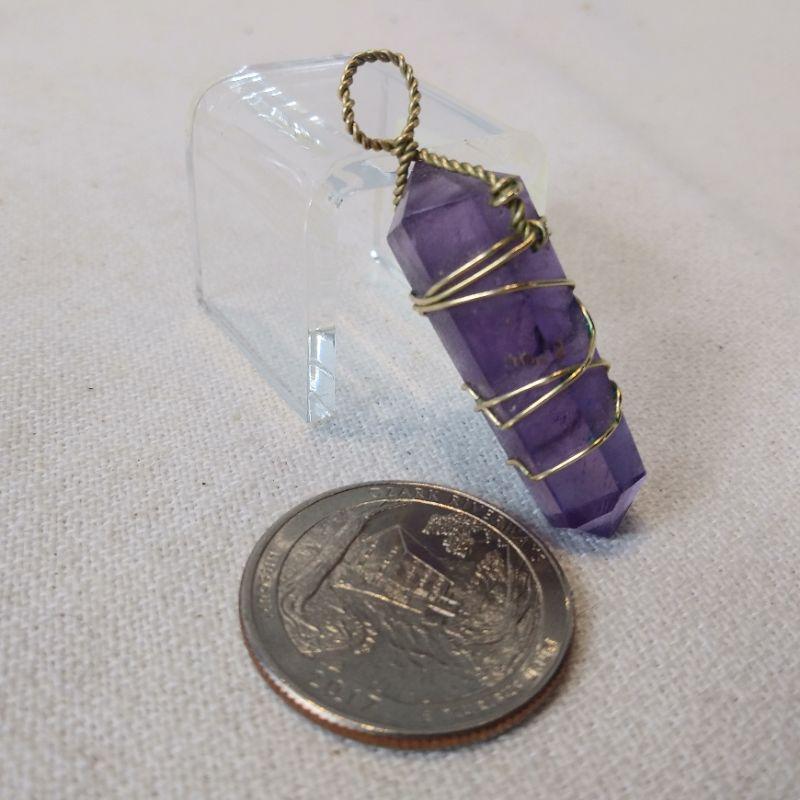 This sweet offering is for a nice Gold Wire-Wrapped Amethyst Crystal Pendant. It measures 1 3/4-inches in total length and is in very good condition. Good for either men or women - especially folks born in February. Reserve/Starting Bid is $10.