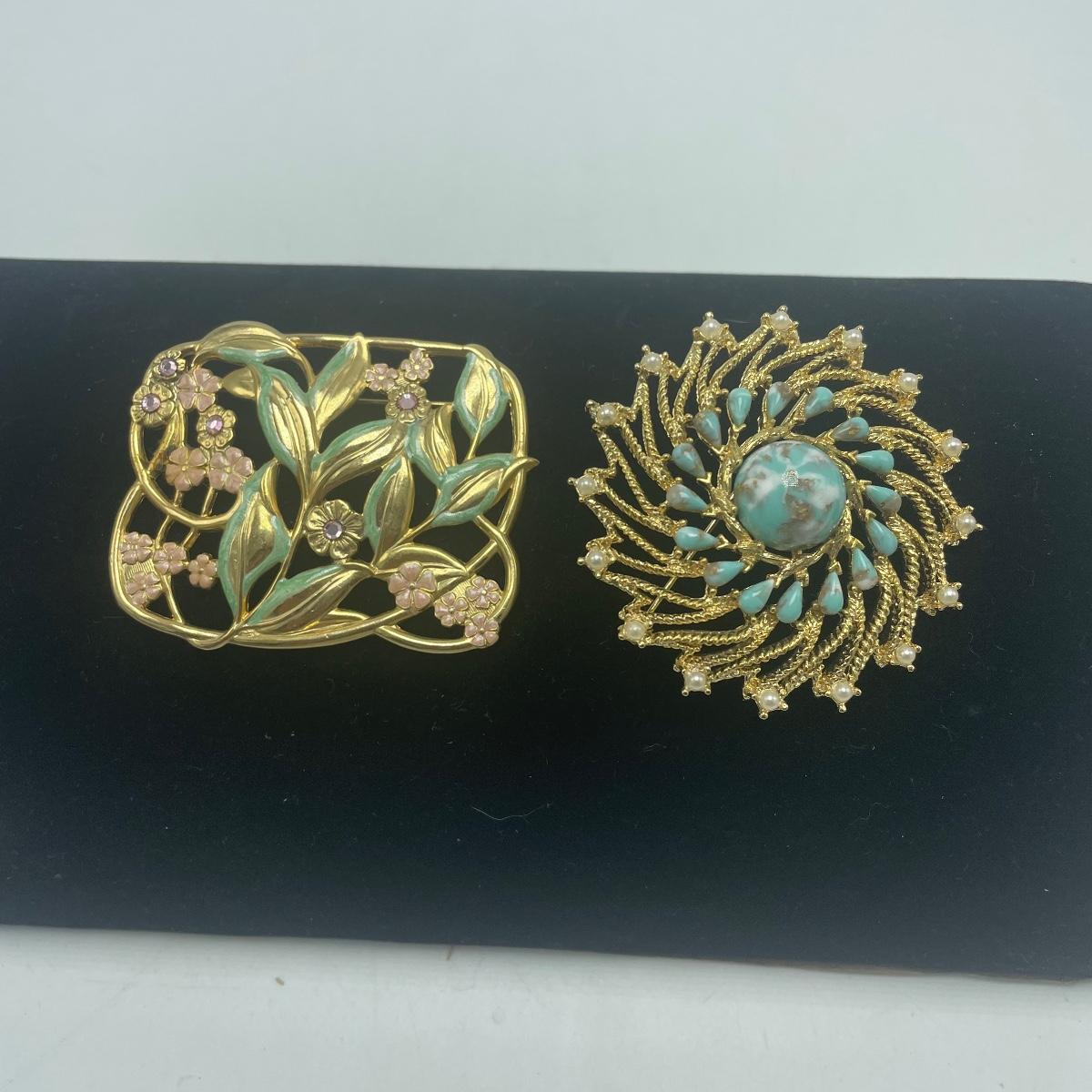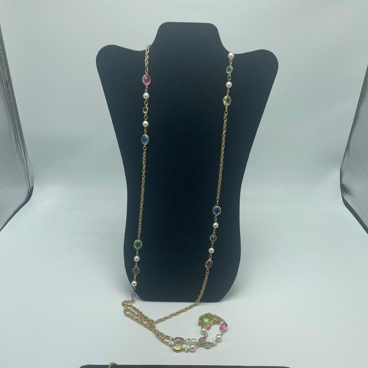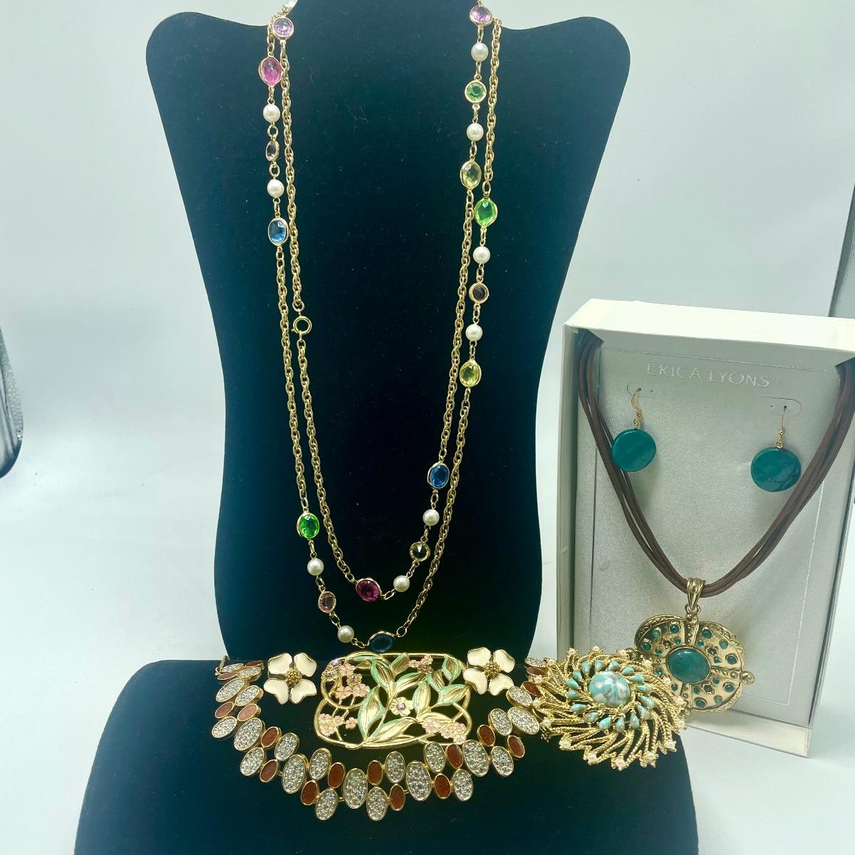 Gold-Colored Jewelry w/Stones: Necklaces, Brooches, Bracelet & Earrings (K-RG)