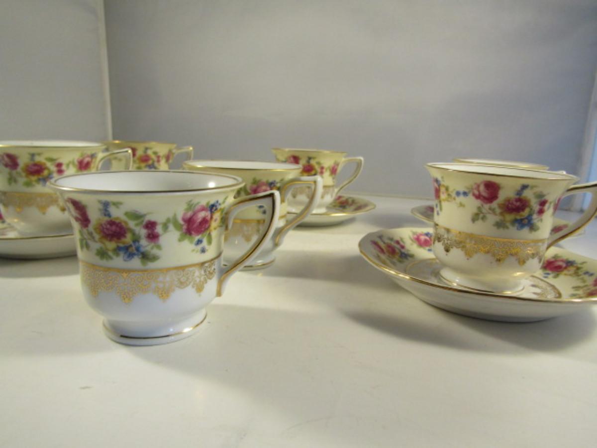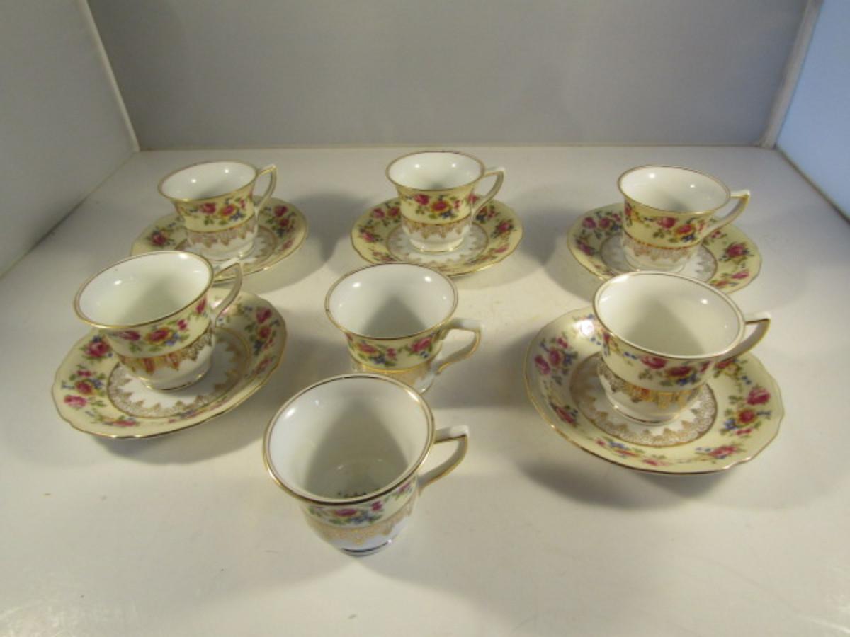Goldcastle Japanese Porcelain Demitasse Cups with Saucers. 7 Cups, 5 Saucers.