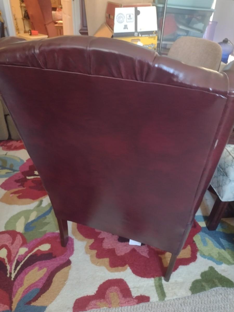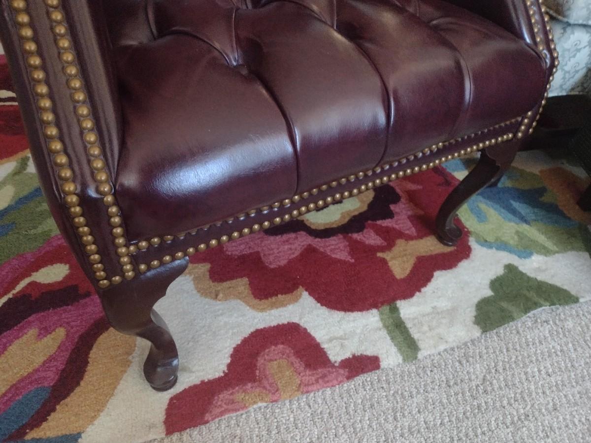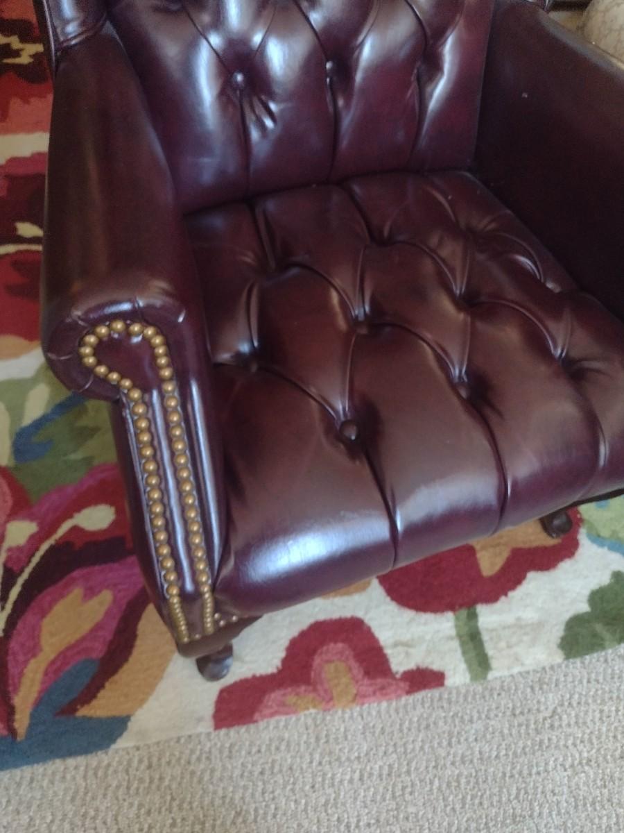 Golden Chair Faux Leather Button Tufted Library Chair with Brass Tack Accents Deep Burgandy