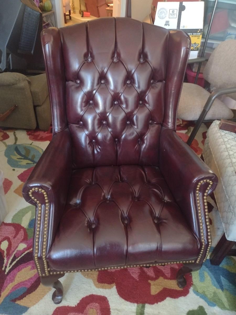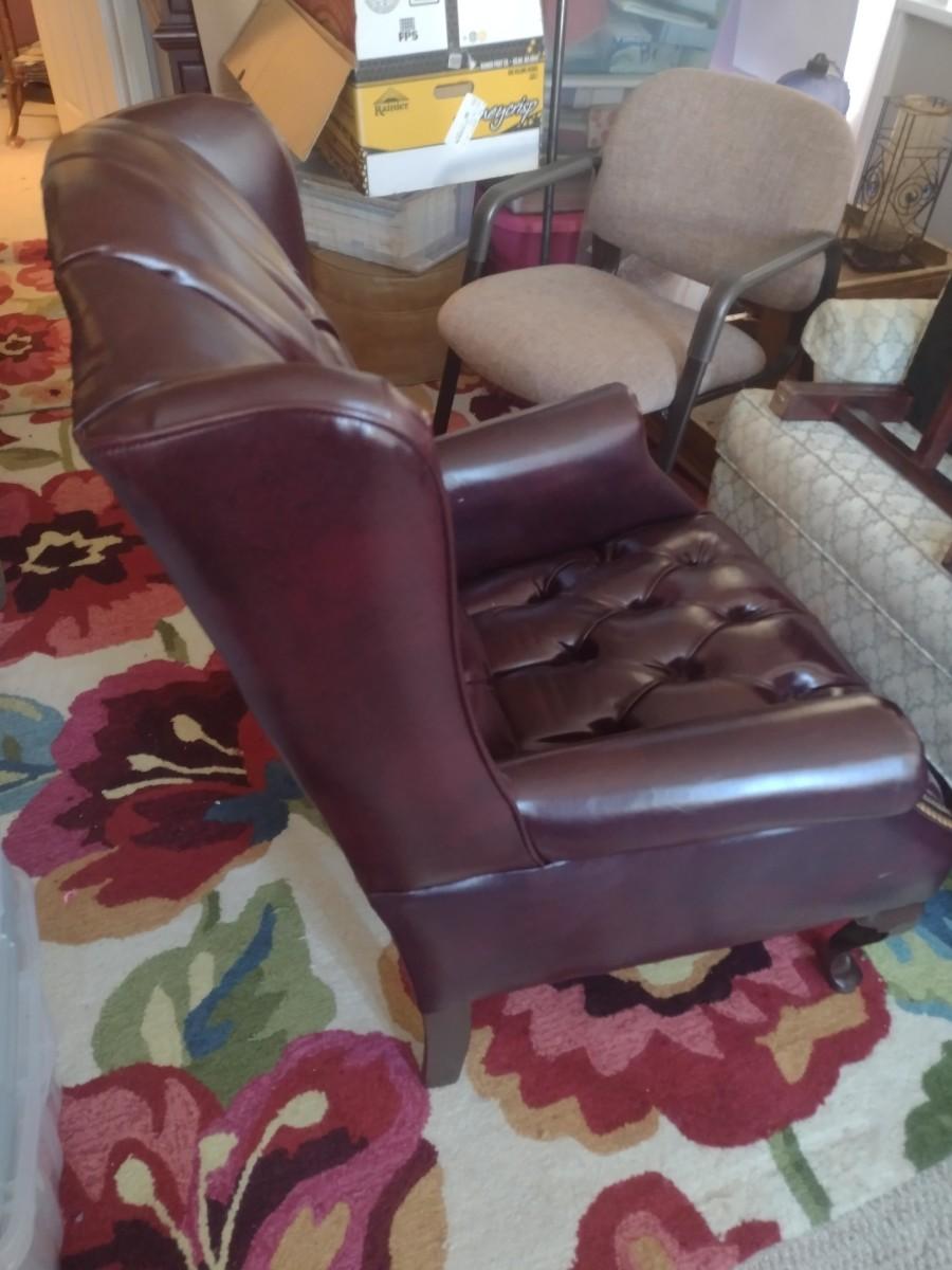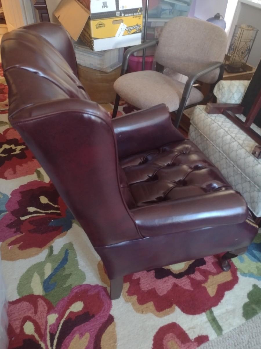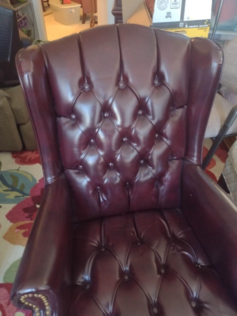 Golden Chair Faux Leather Button Tufted Library Chair with Brass Tack Accents Deep Burgandy