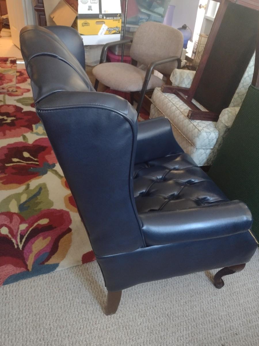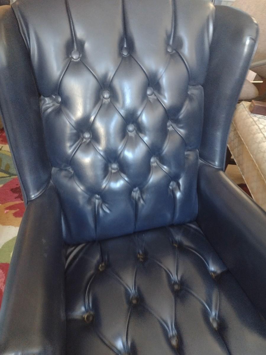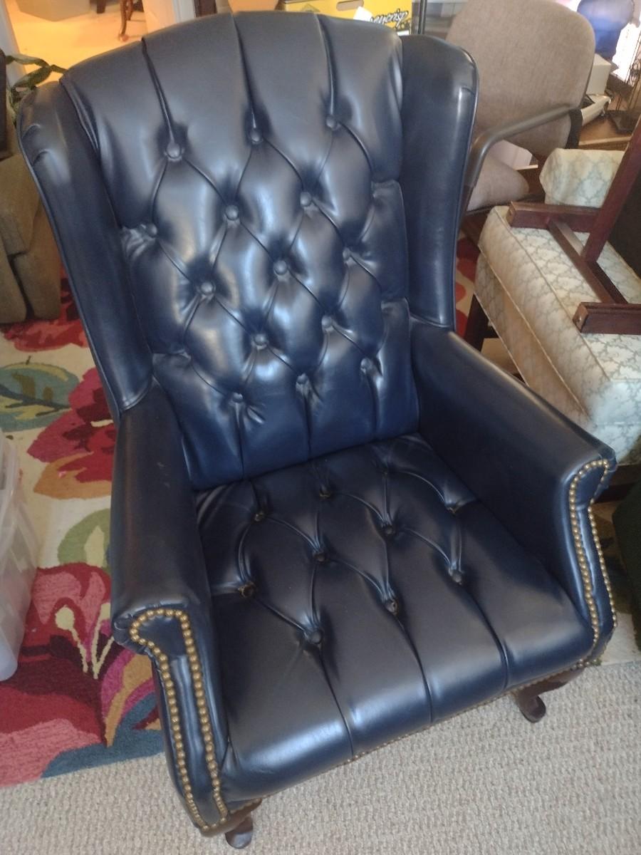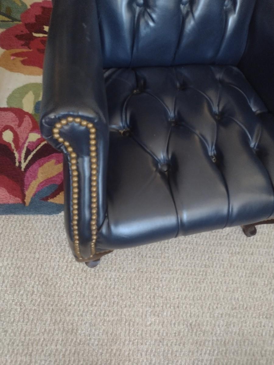 Golden Chair Faux Leather Button Tufted Library Chair with Brass Tack Accents Navy Blue
