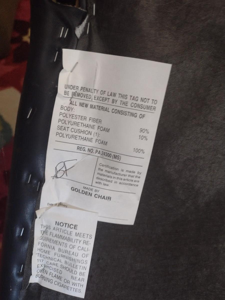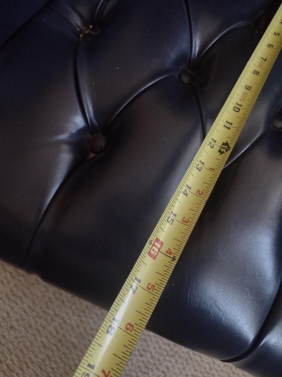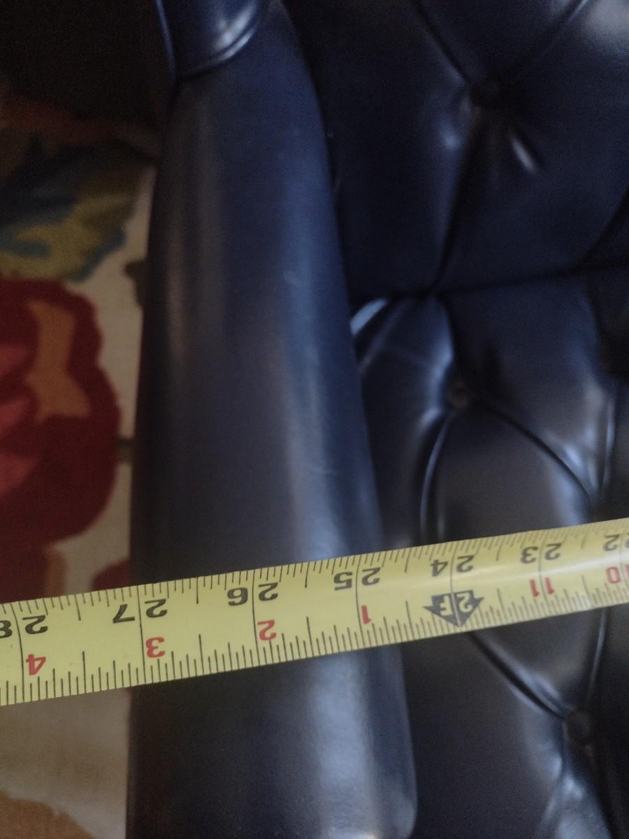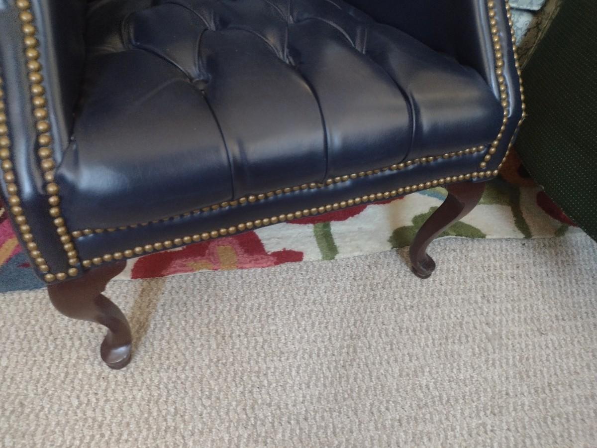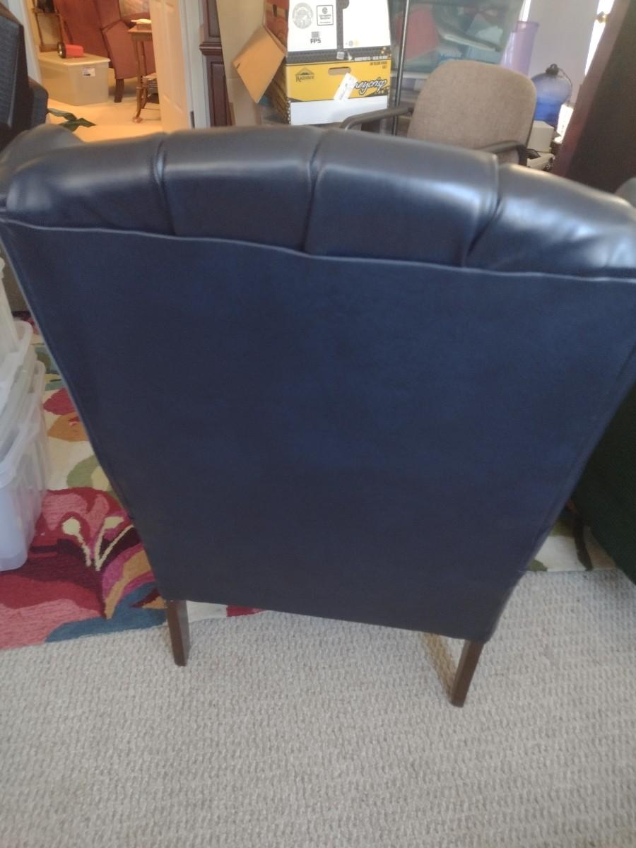 Golden Chair Faux Leather Button Tufted Library Chair with Brass Tack Accents Navy Blue