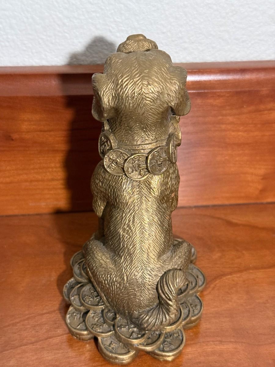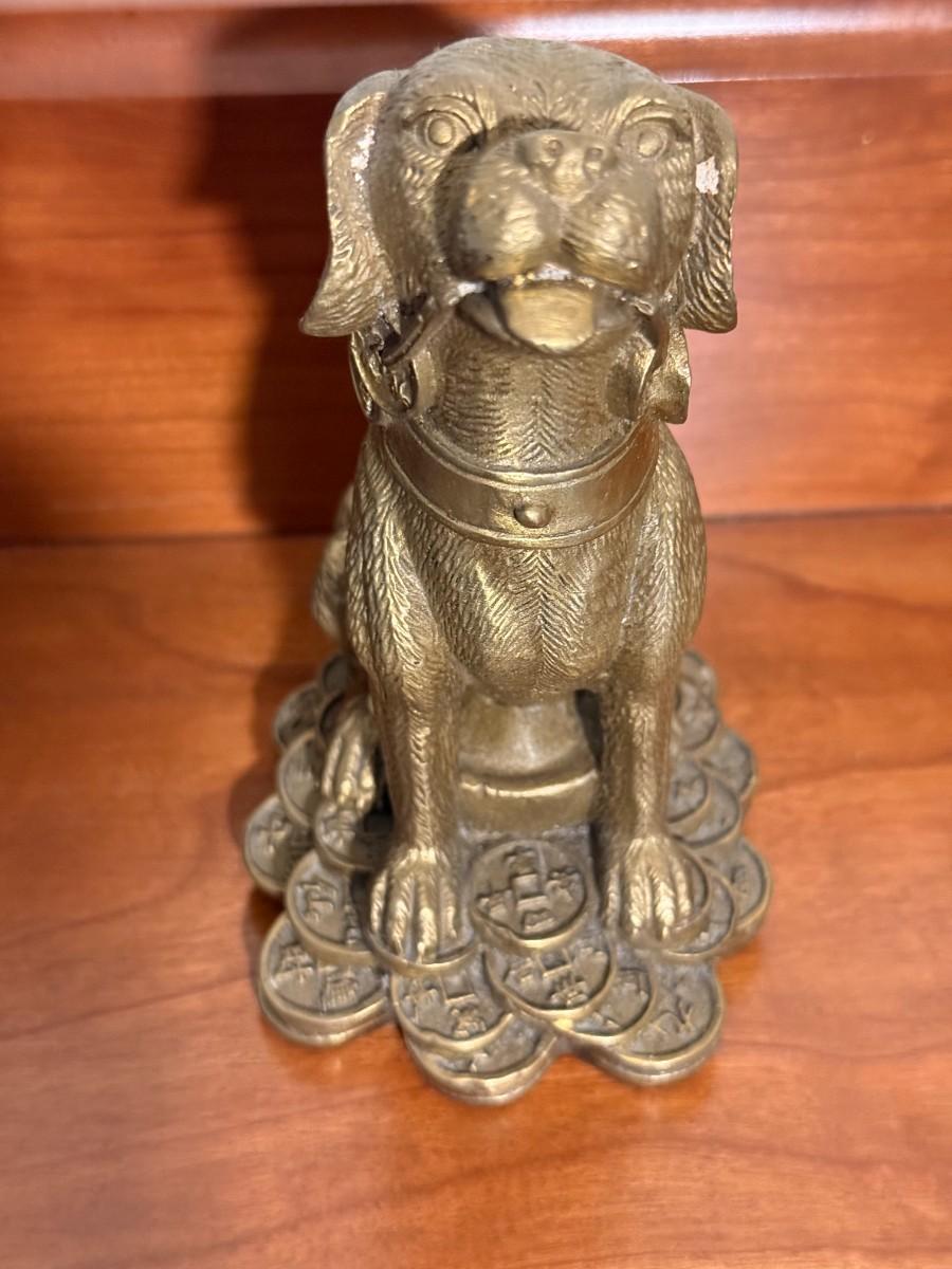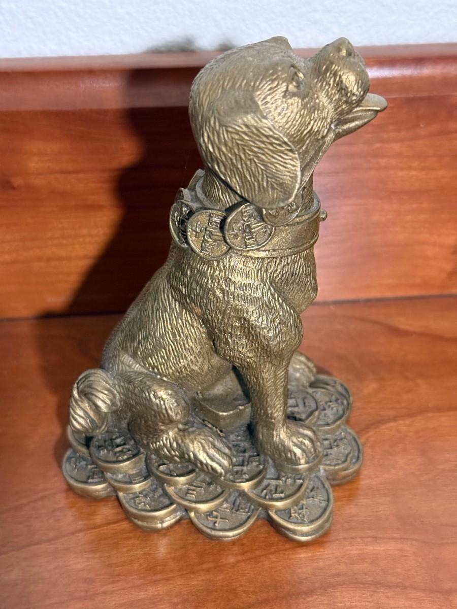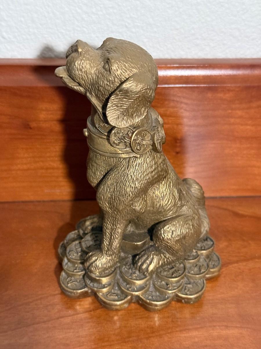 Golden Chinese Good Luck Zodiac Coin Dog Statue - 5.1/2in Tall