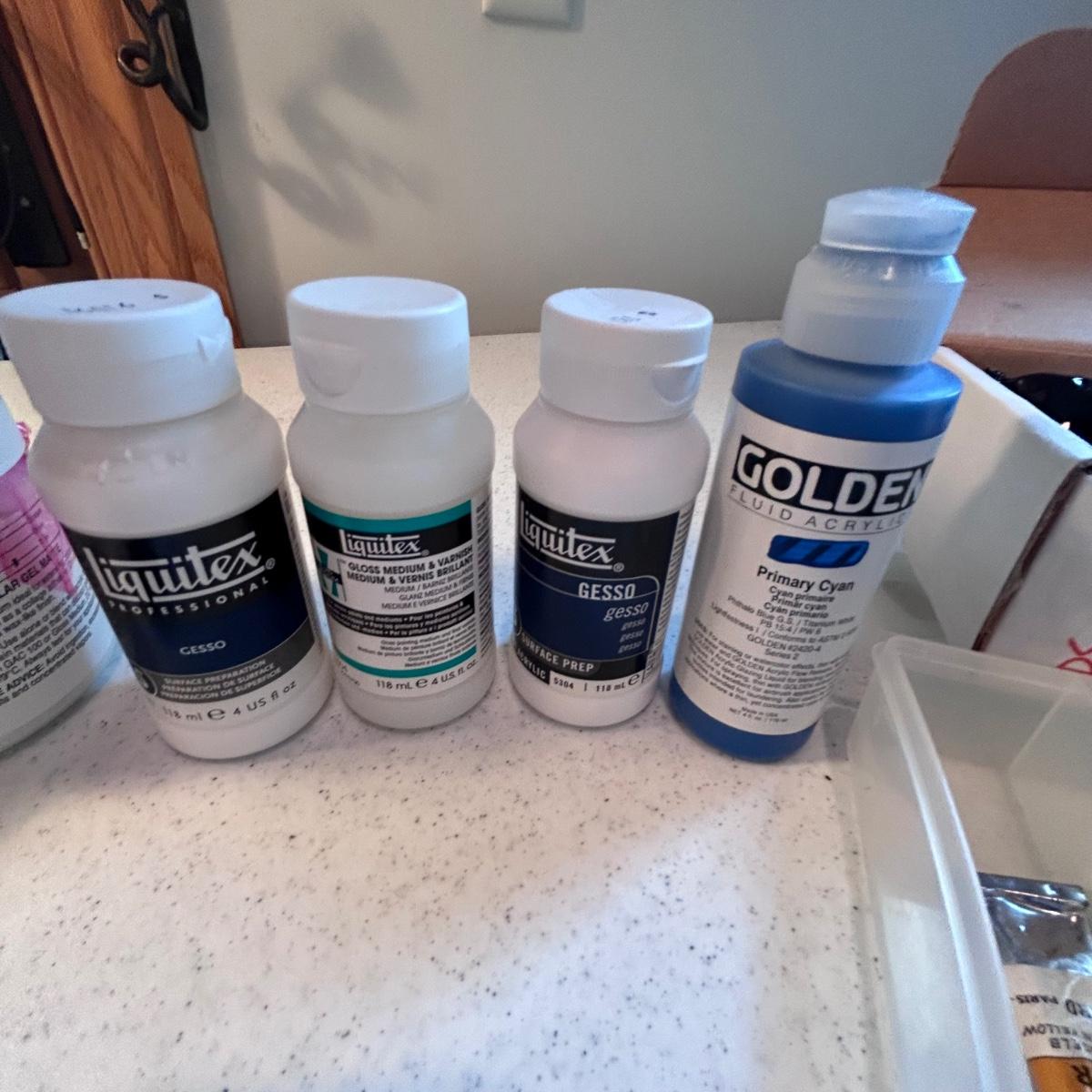 Array of acrylics and mediums that appear to still be useable. We cannot guarantee the quality as some items have been opened and used. Please bid accordingly. Local pick up only.