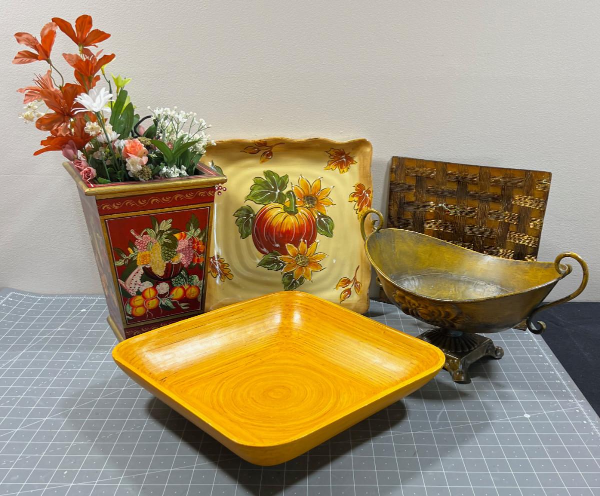 Golden Floral: Planter, Fruit Holder, Platter etc.