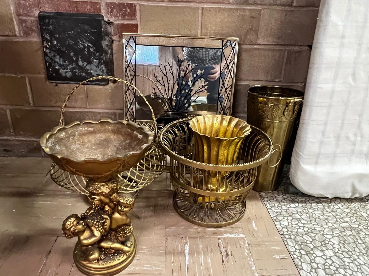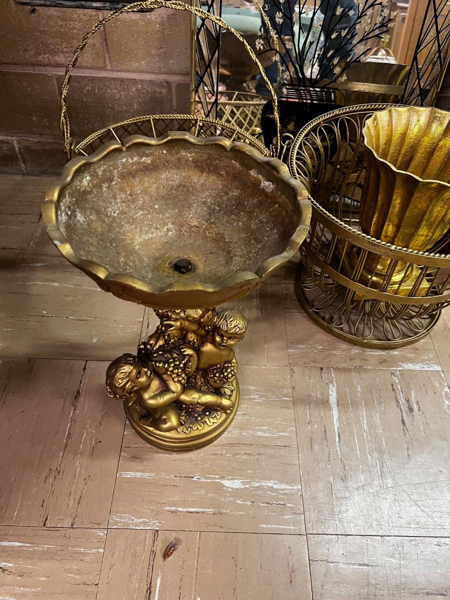 GOLDEN Lovely Lot of Metal Baskets and Planters, Cherubs etc.