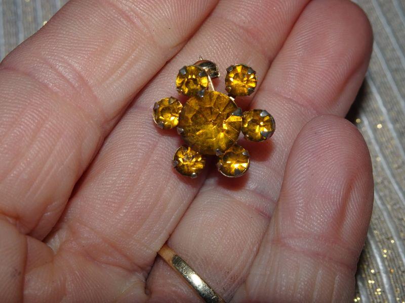 Golden Rod Rhinestone Flower Brooch