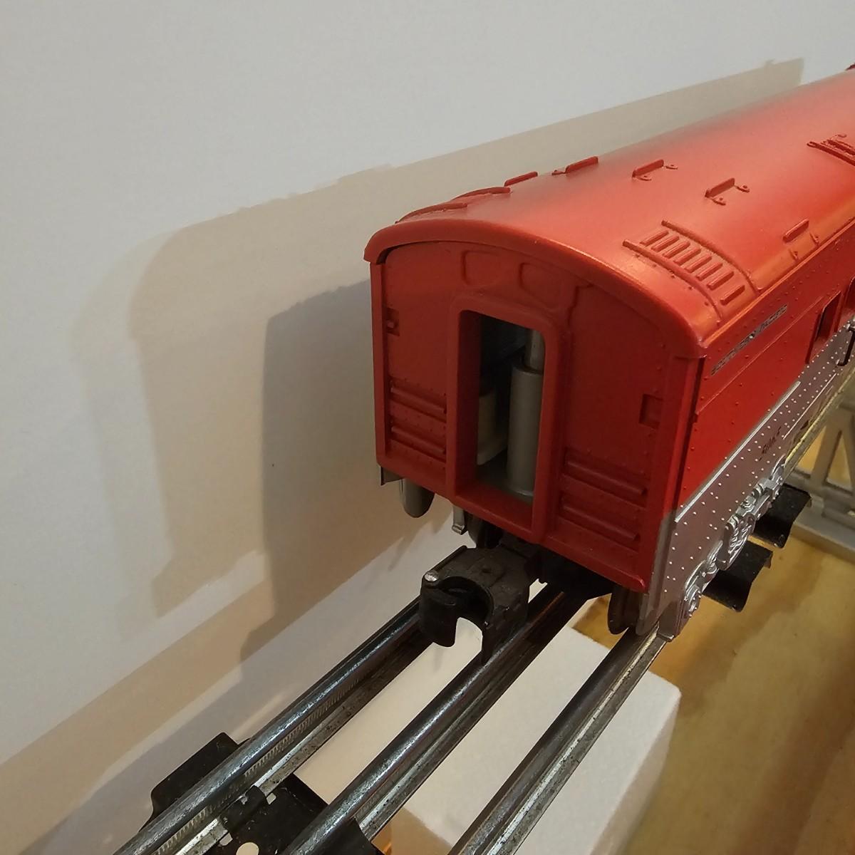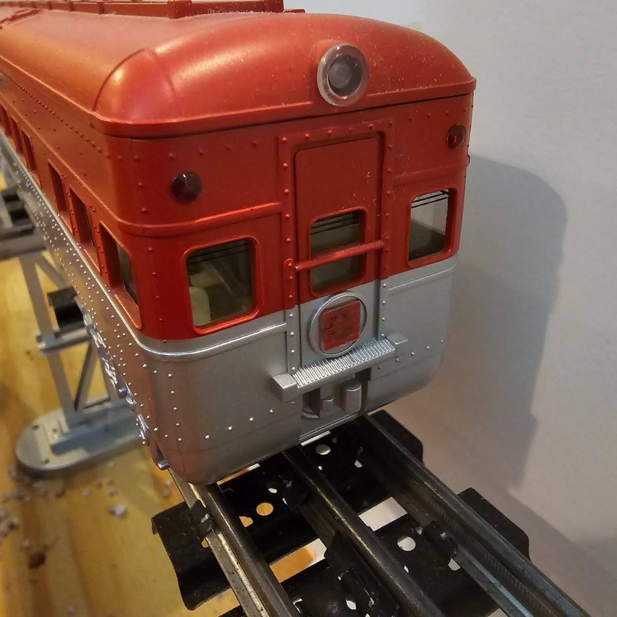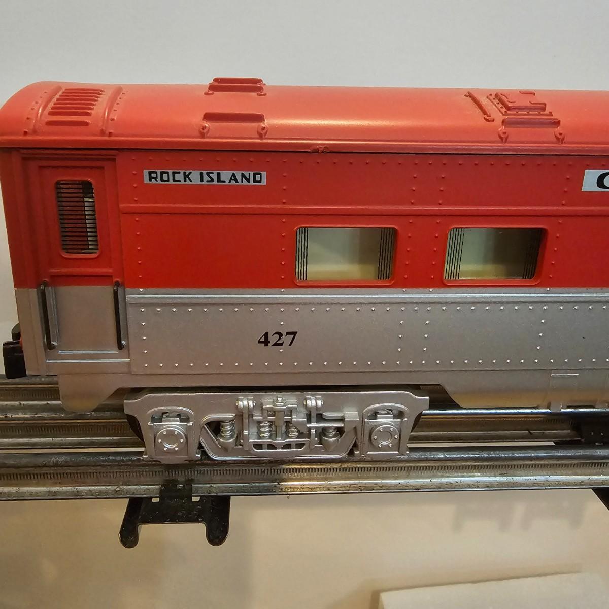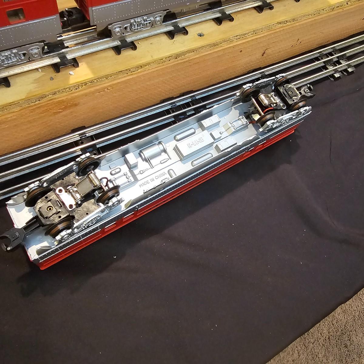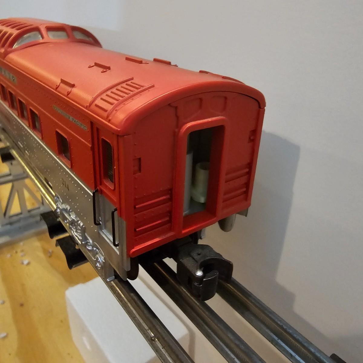 Eight Golden State passengers cars by K-Line. Cars all have red/silver color scheme, come with original boxes. Baggage car, observation car, vista dome and more. All cars have detailed interiors and lighting, all tested working. Standard die-cast couplers. Approximate full train length is 108". See photos for details. Shipping available. Please note that any price tag seen on an item was not put there by Sterling Transitions and does not reflect the current value of the item. Any train tracks shown in photos are not included but are available in another lot in this sale.