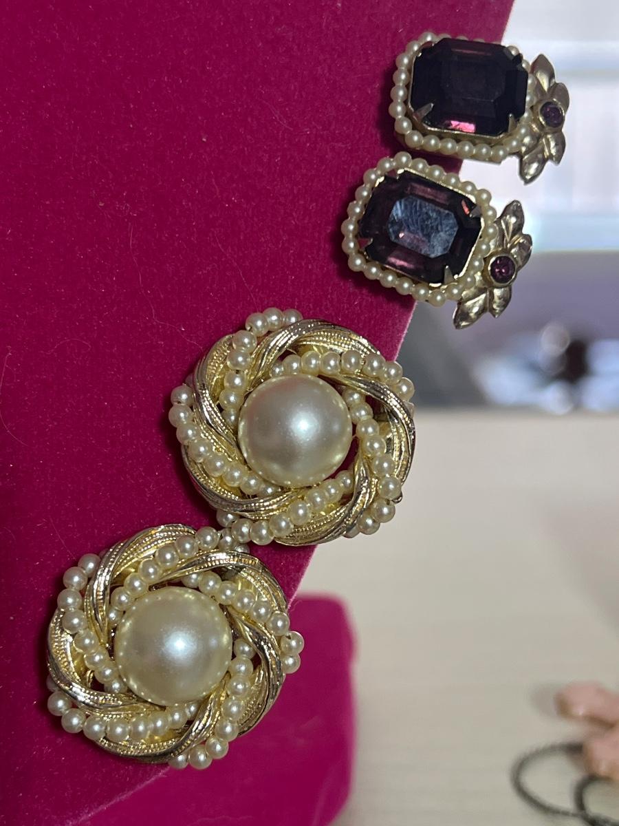 Golden toned black jeweled leaf shaped dangle earrings. A tiny bit over 2in long