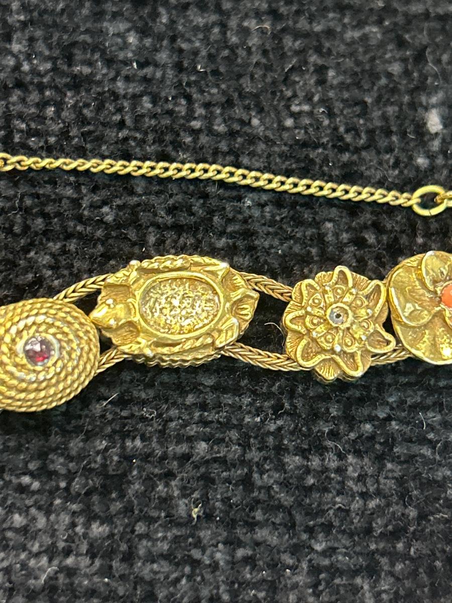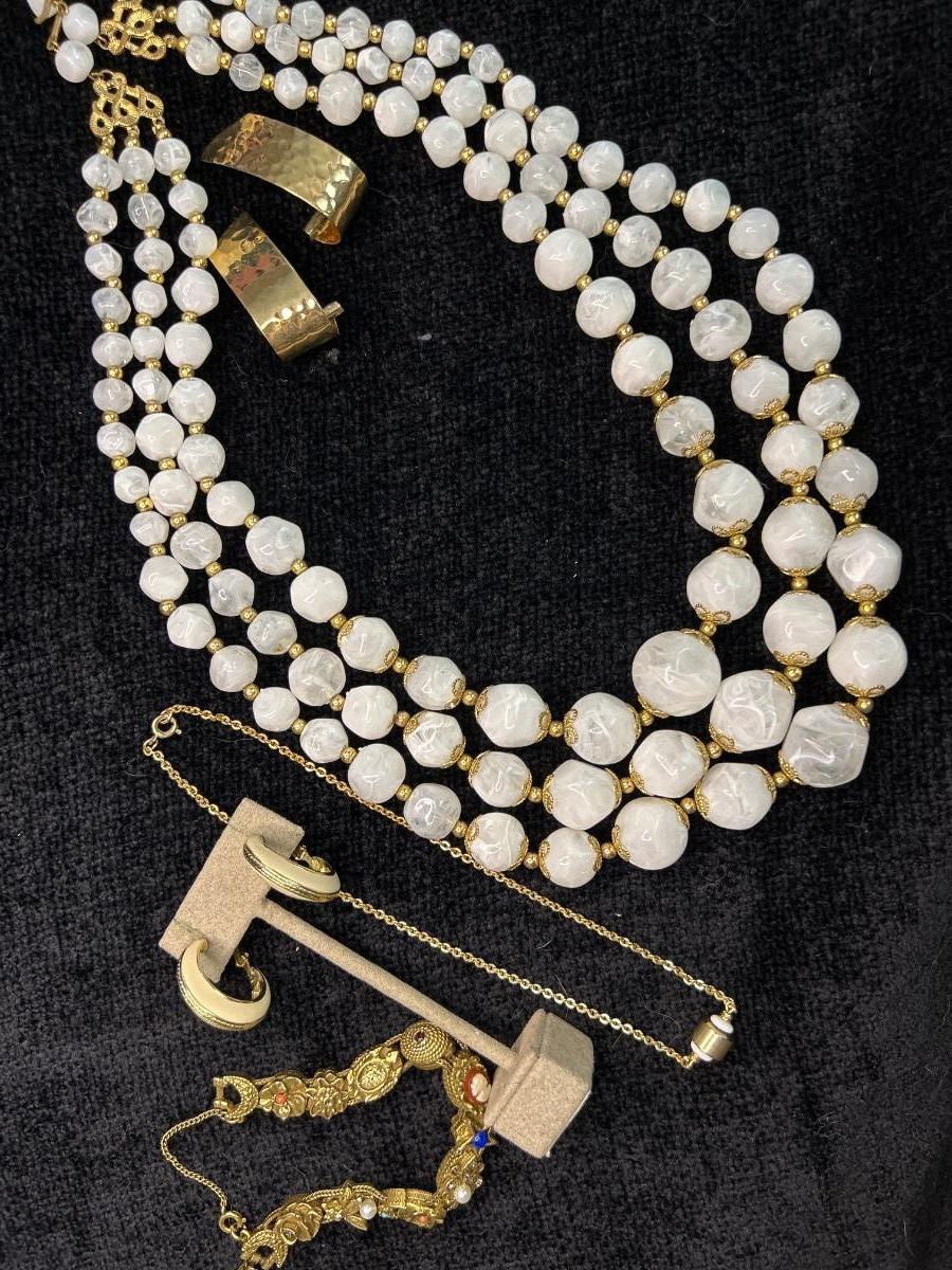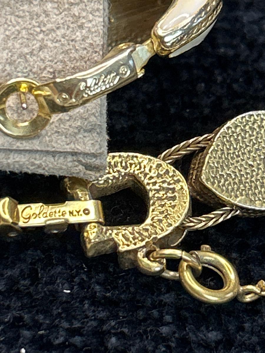 The bracelet is Goldette, but missing one piece, the hoop earrings next to it are also Goldette & are pierced, the other three pieces are not branded.