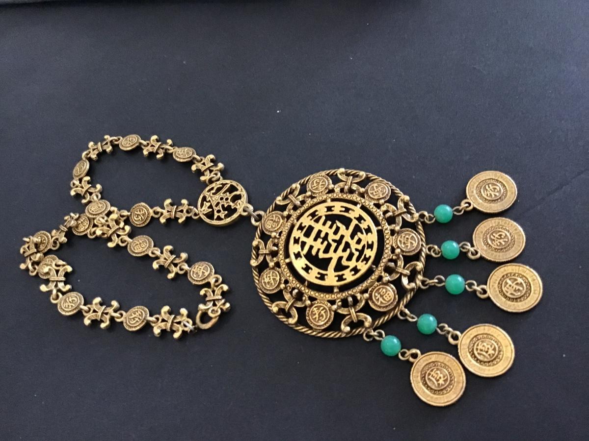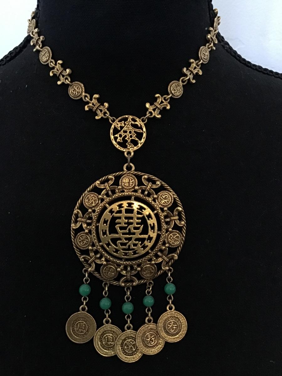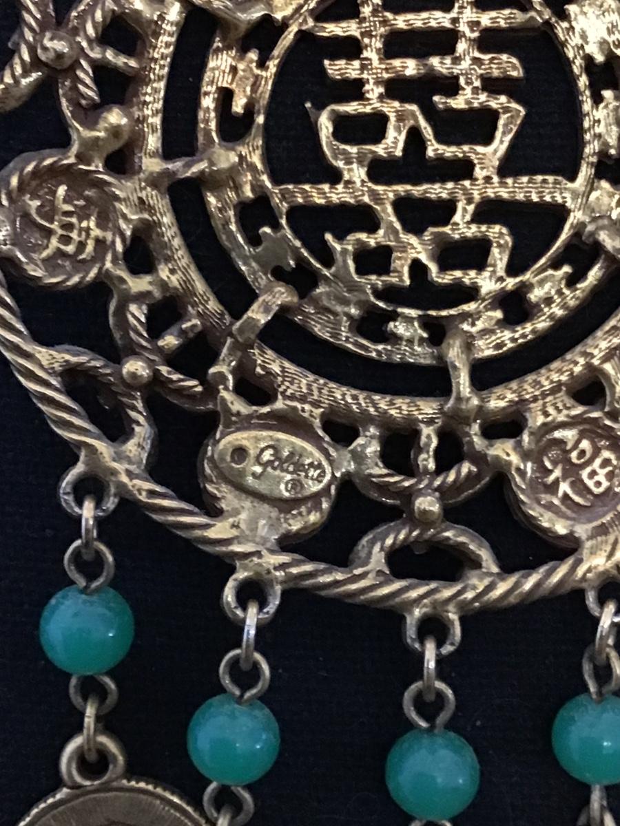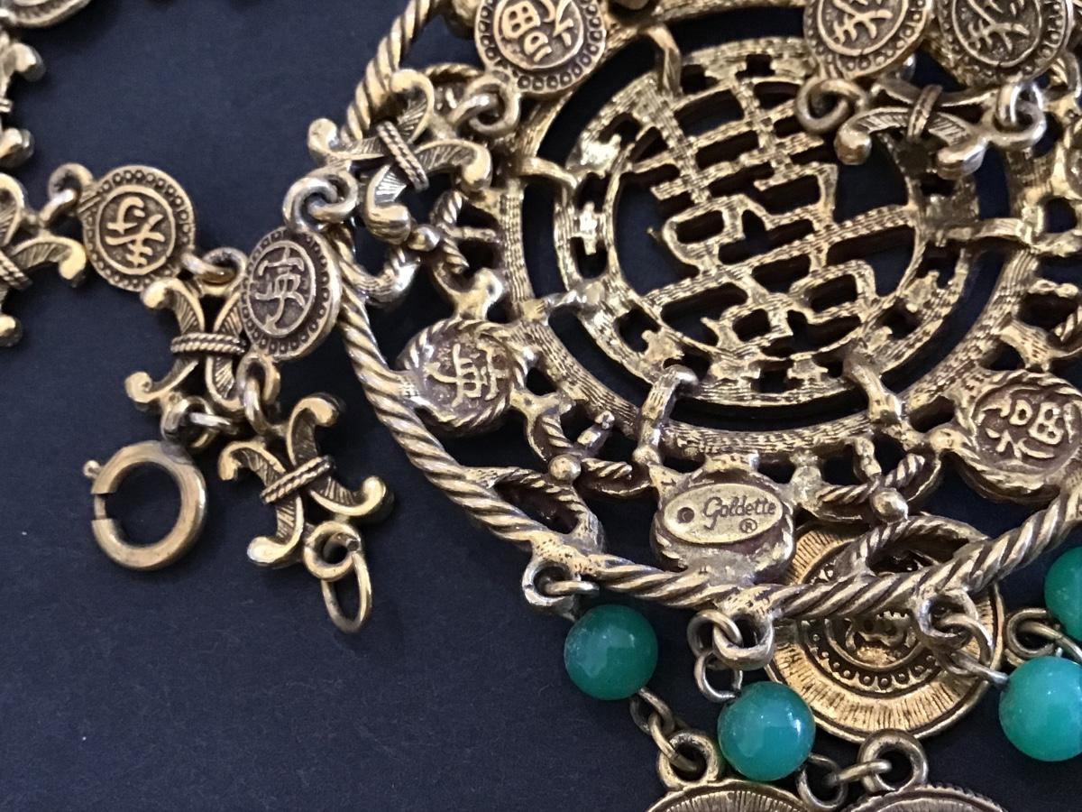 Goldette vintage AsianMedallion Coin Charms Faux Jade Signed Vintage