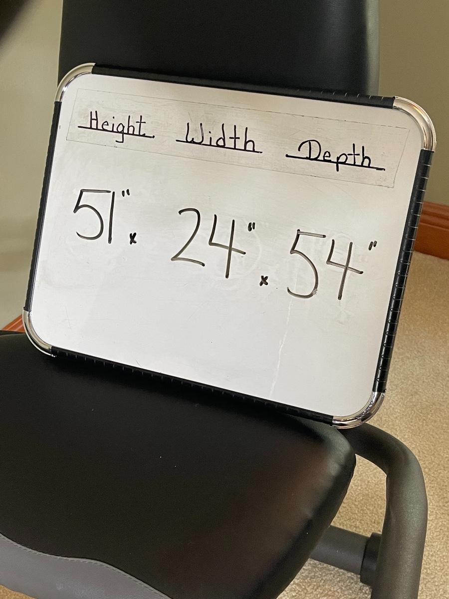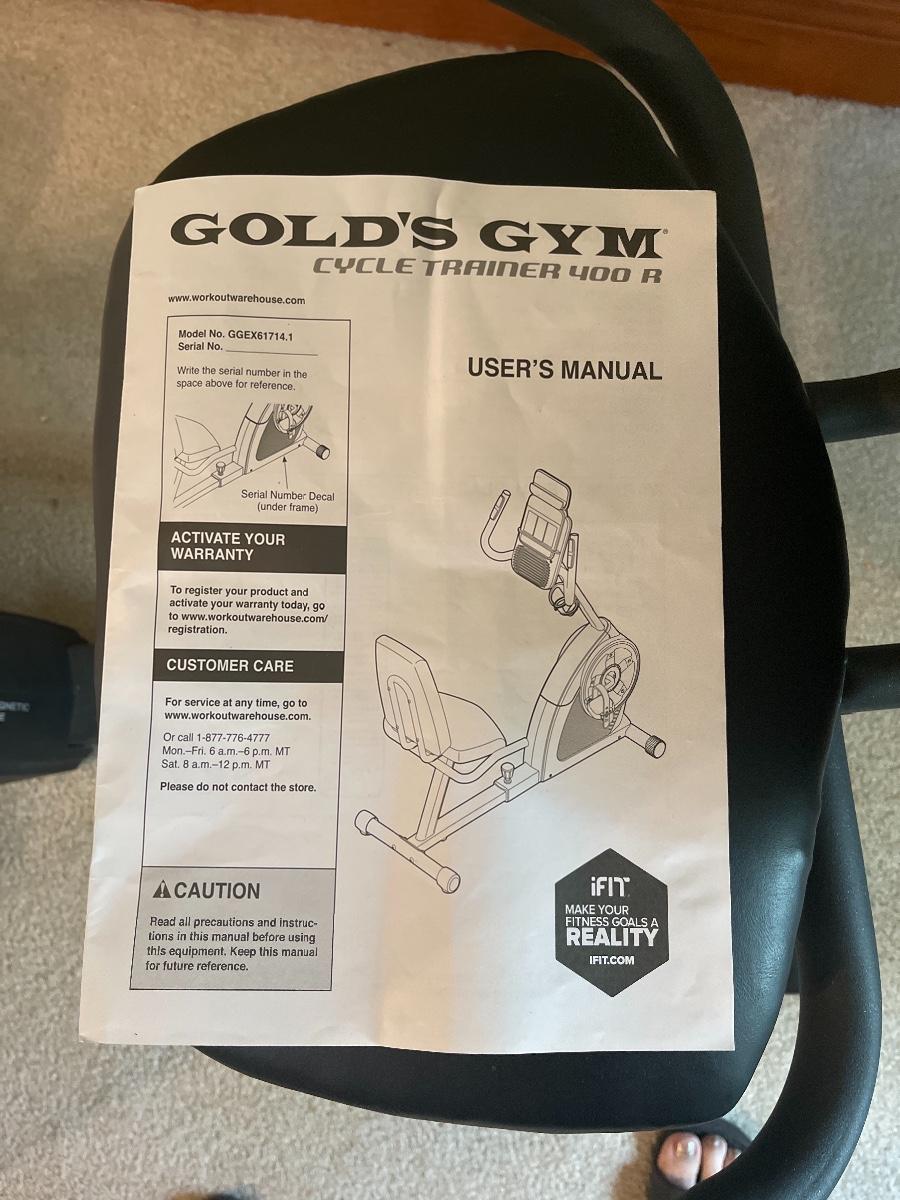 Recumbent training bike. Seat sits low and adjust. Also has pulse monitors and a working fan. Includes a users manual.
