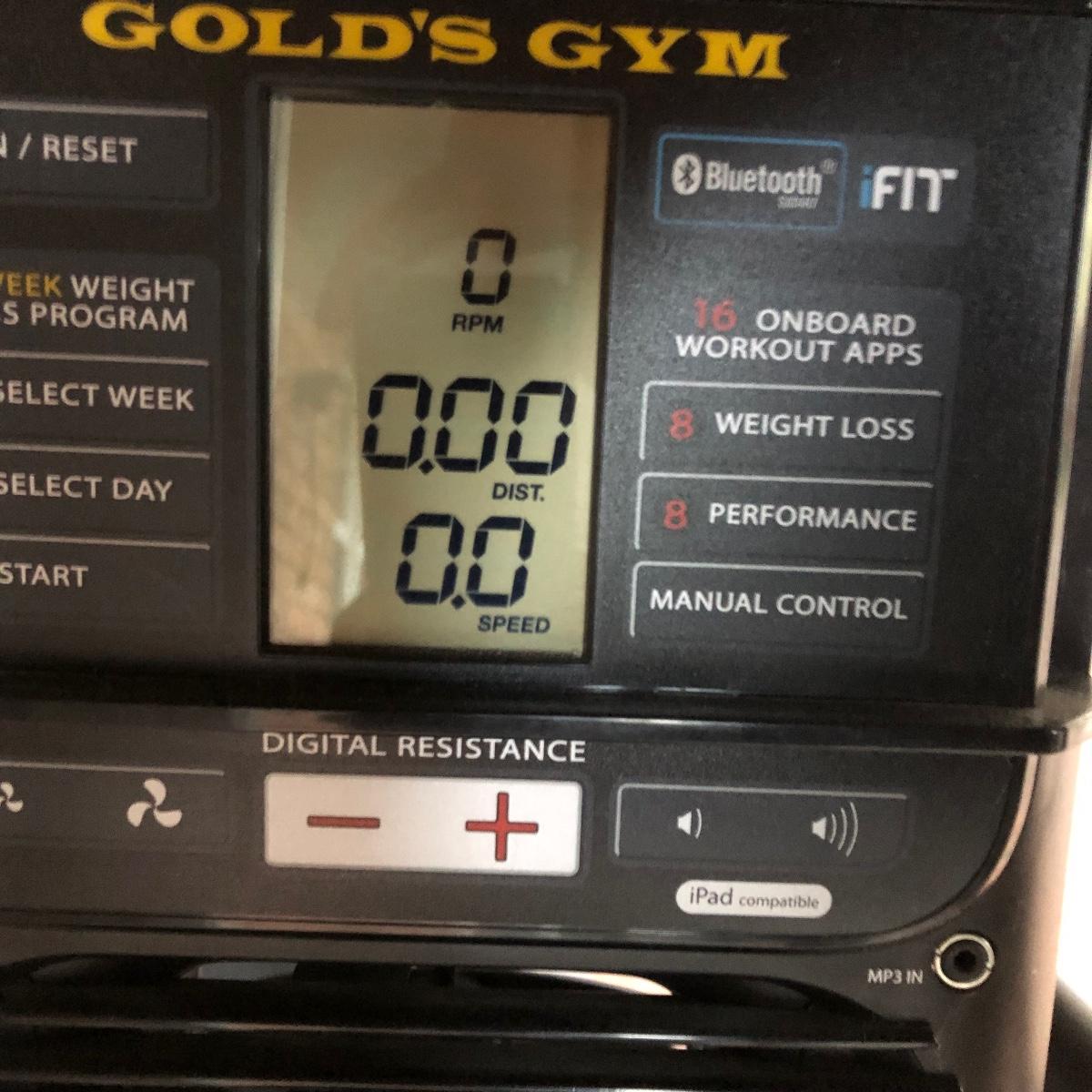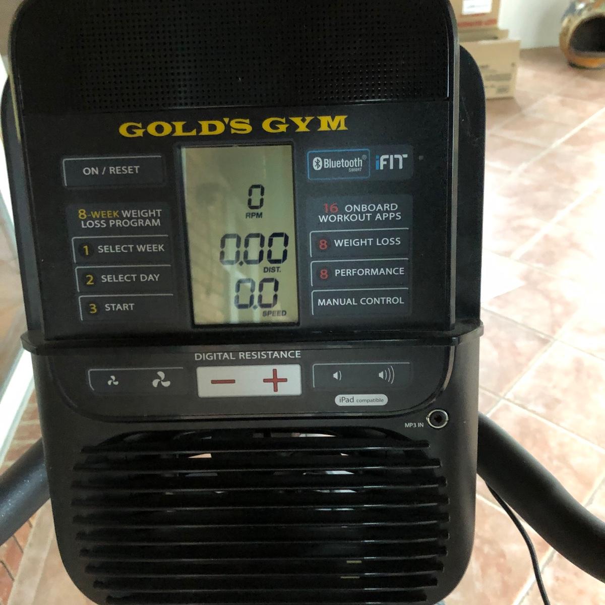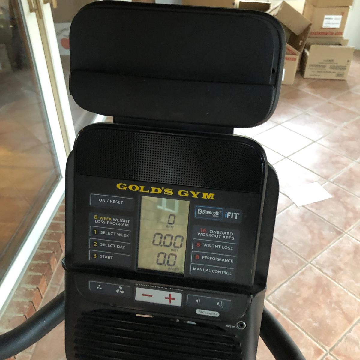 Lot includes Golds Gym Recumbent exercises bicycle model # 400-RI. Bicycle worked when tested. Bicycle measures 23” x 46” x 52”.