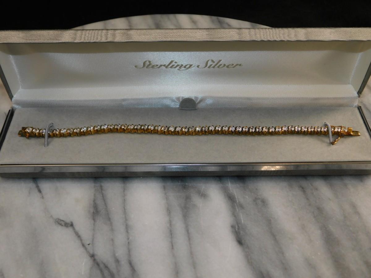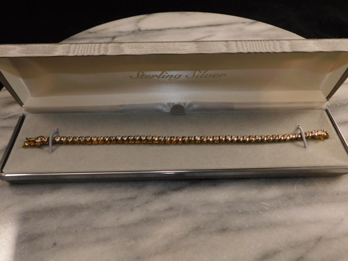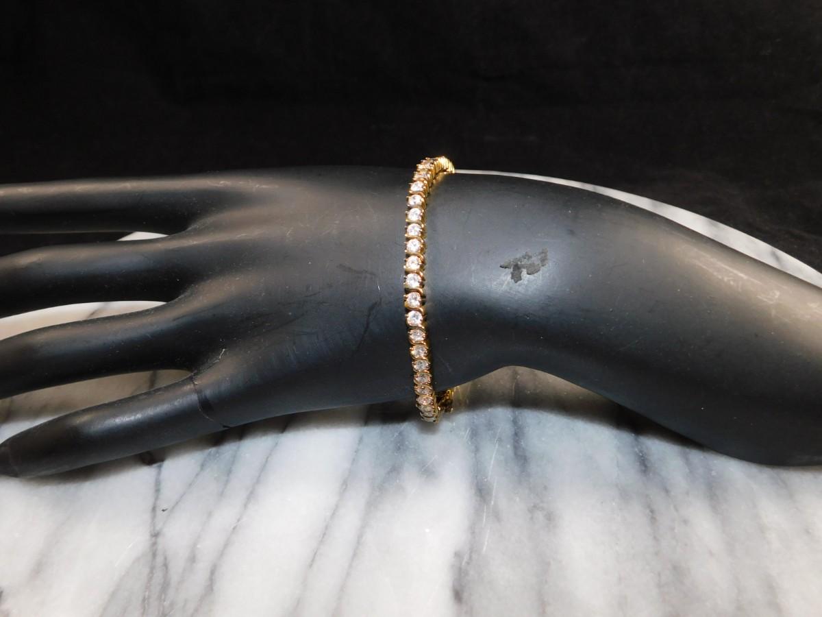 Gold-Tone 925 Sterling Tennis Bracelet w/ Quartz Settings 7”, 11.8g