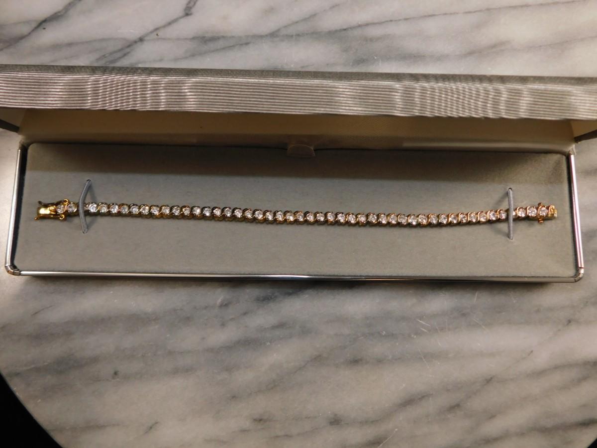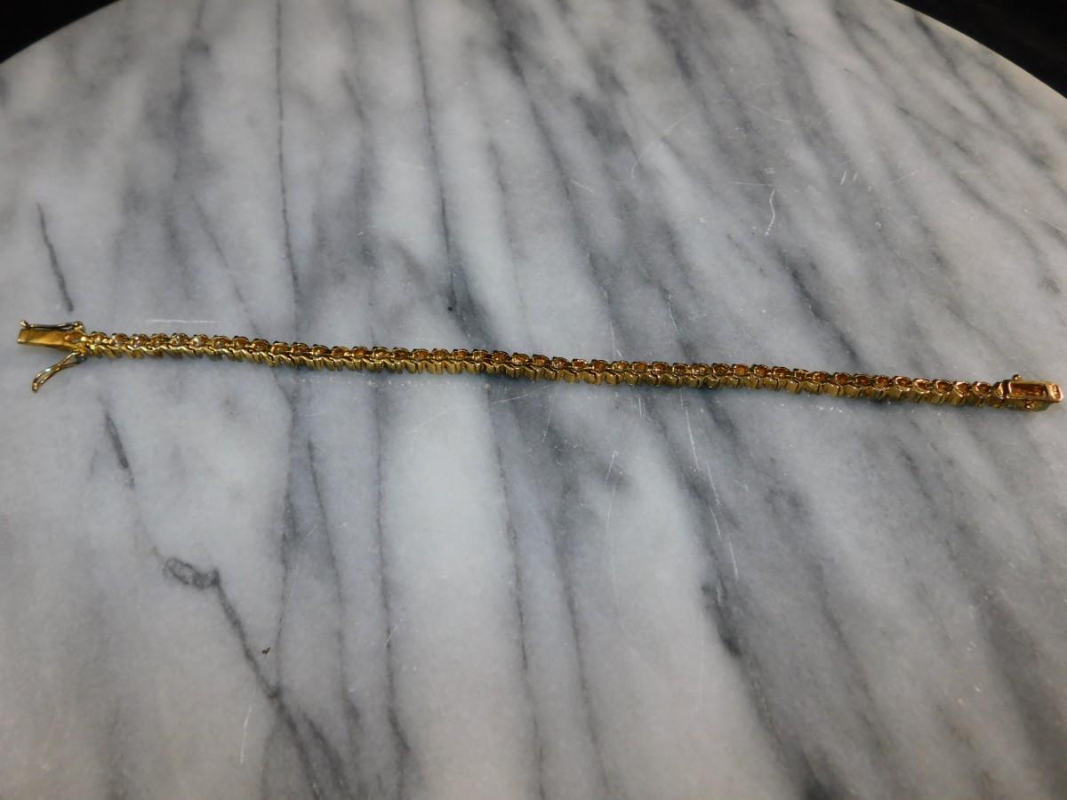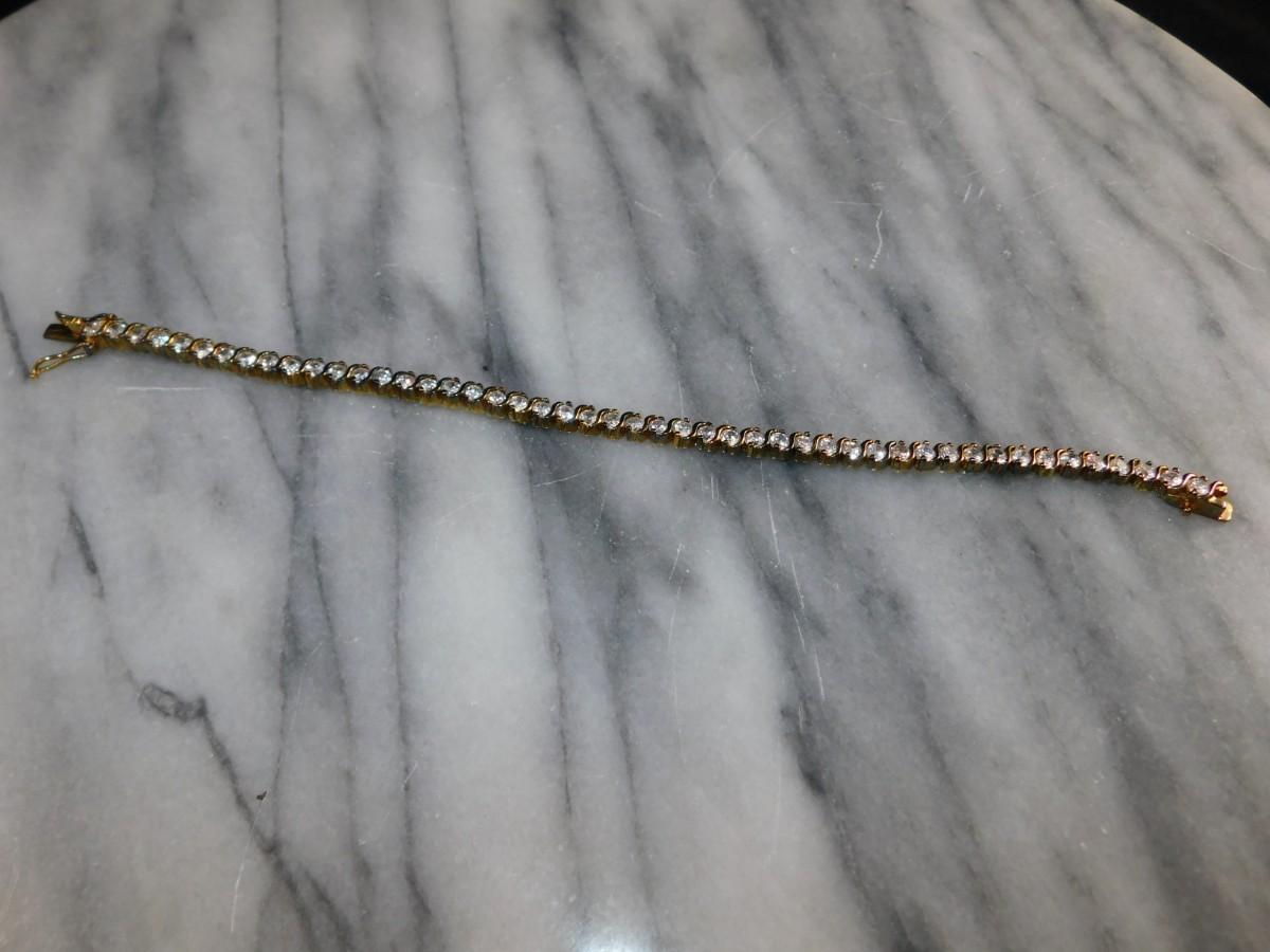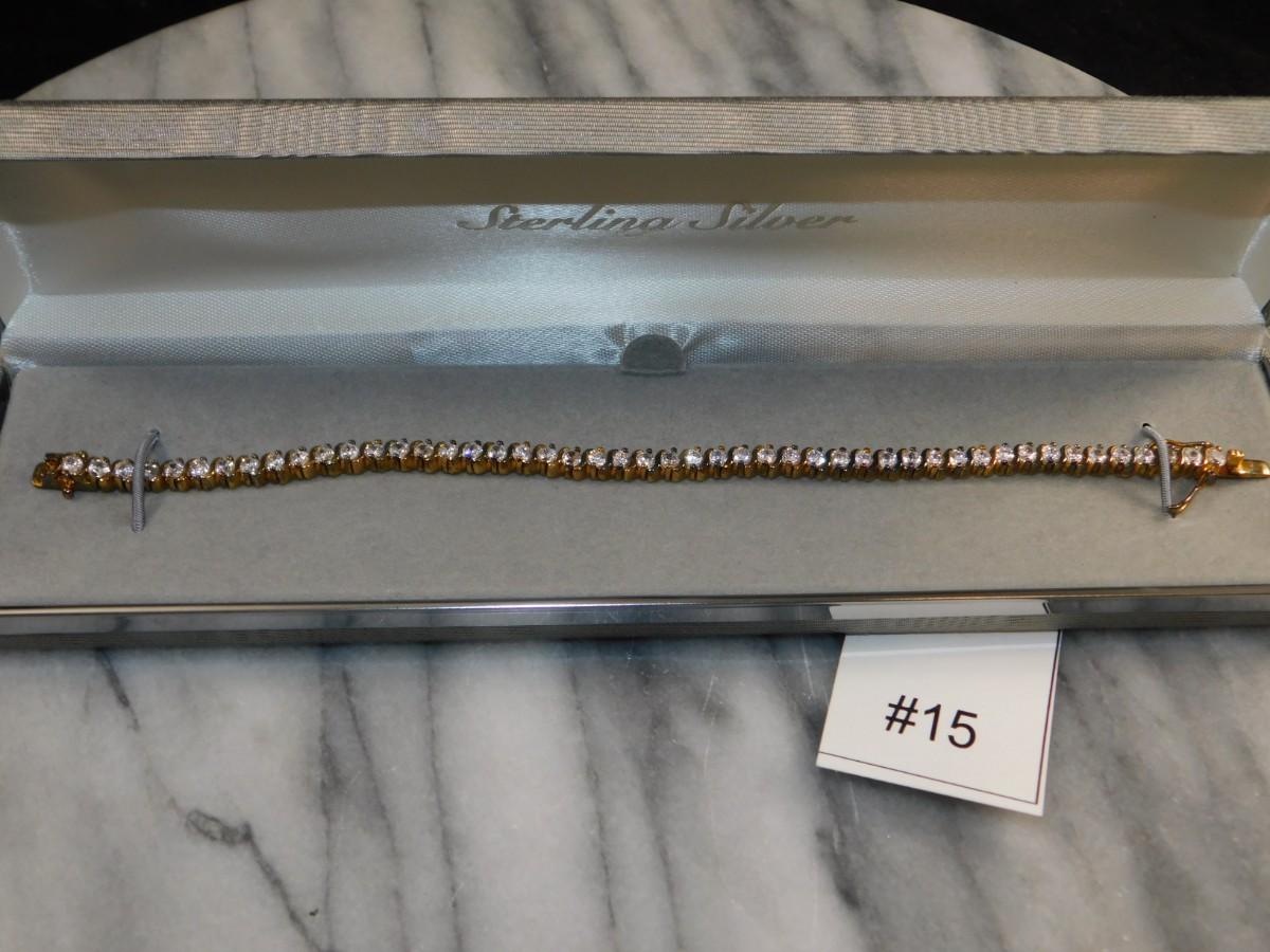 Gold-Tone 925 Sterling Tennis Bracelet w/ Quartz Settings 7”, 11.8g