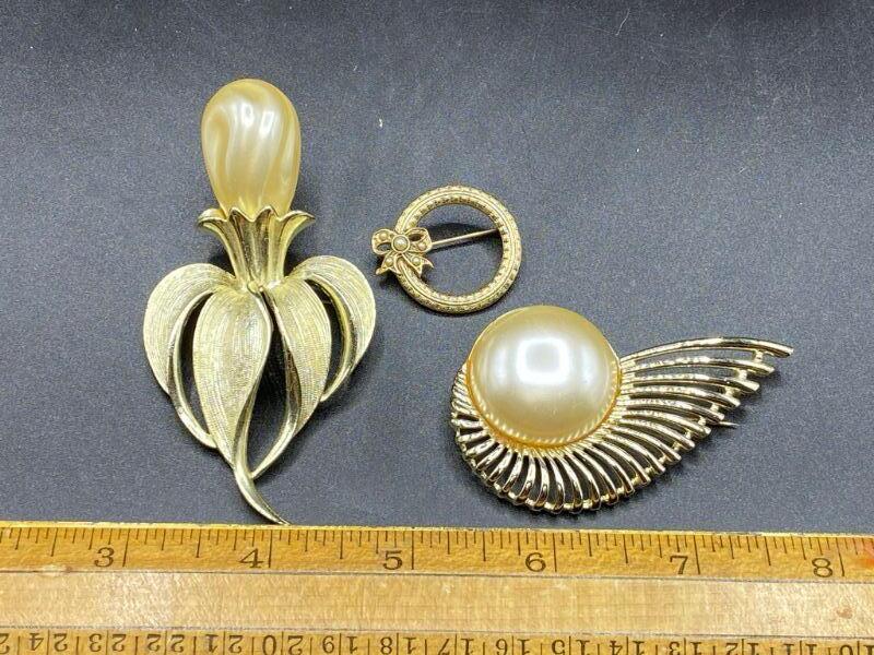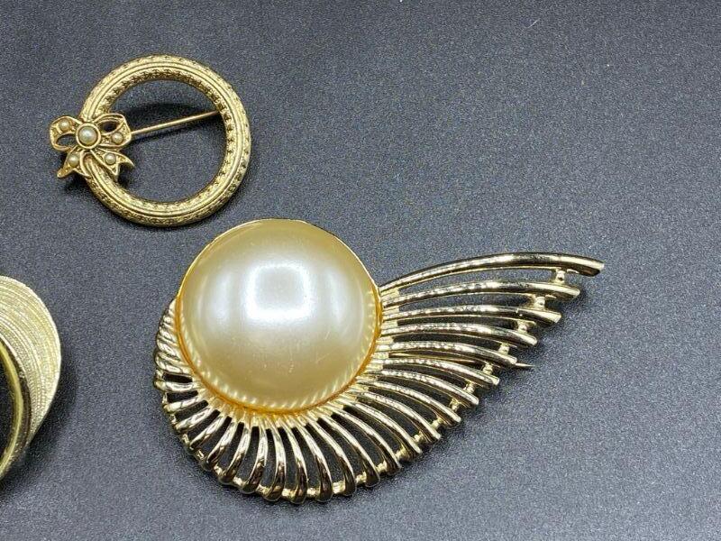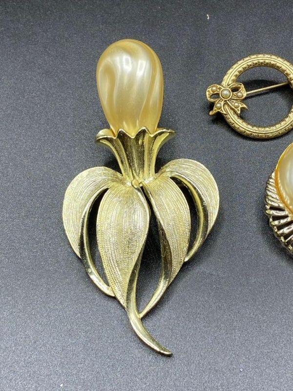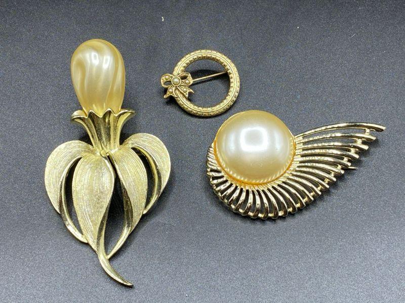 Vintage goldtone pin lot. Faux pearl accents on all three.