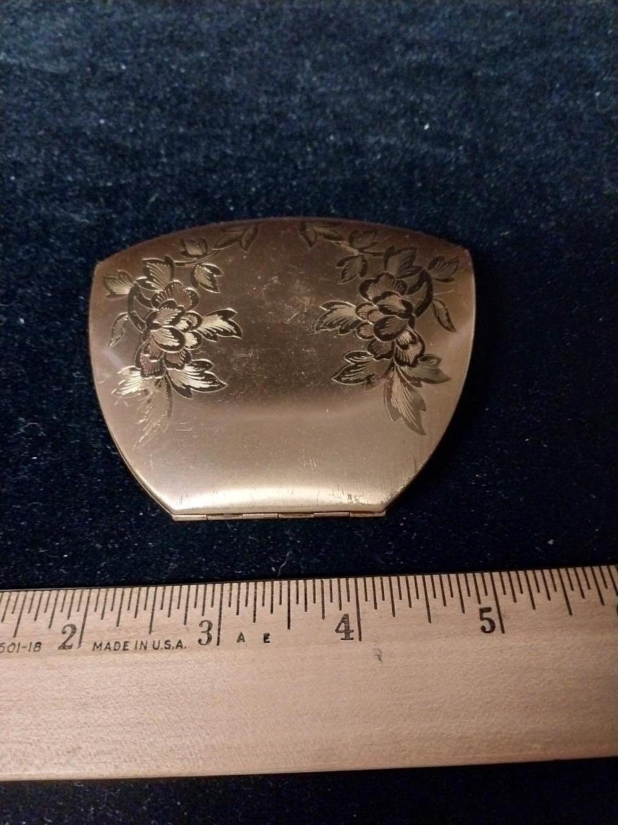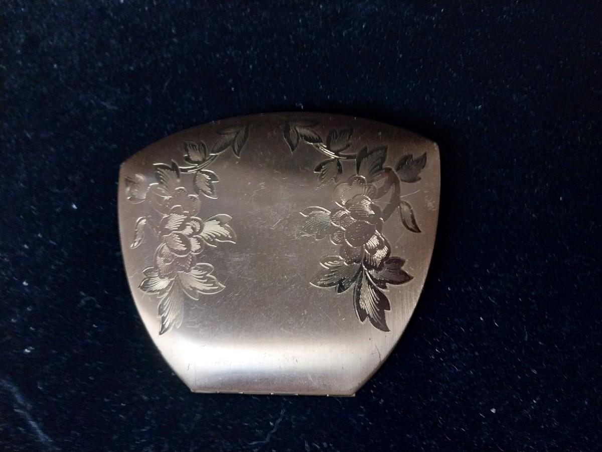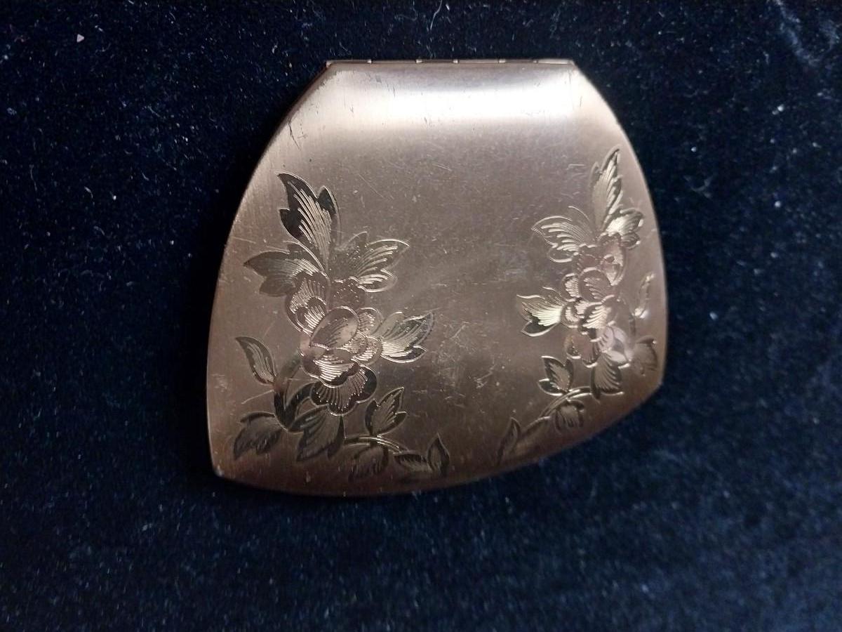 GOLD-TONE ENGRAVED POWDER W/MIRROR COMPACT