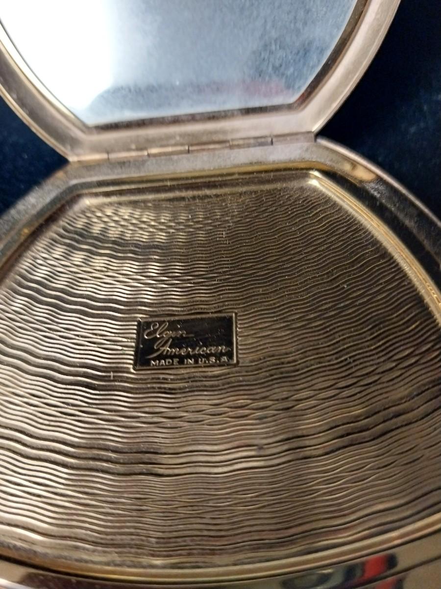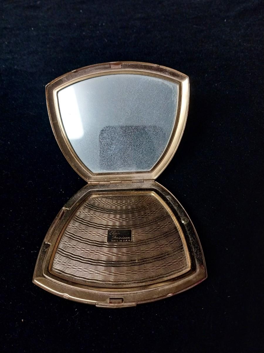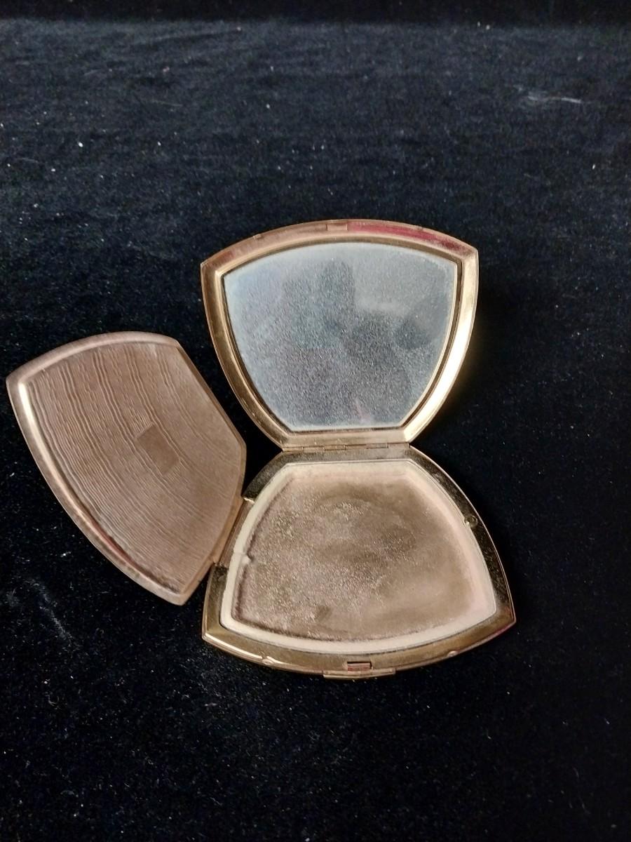GOLD-TONE ENGRAVED POWDER W/MIRROR COMPACT