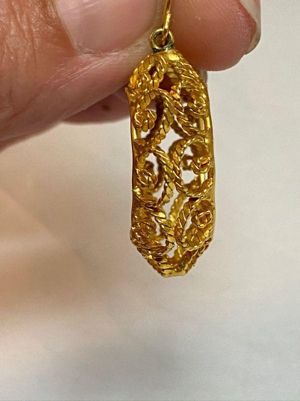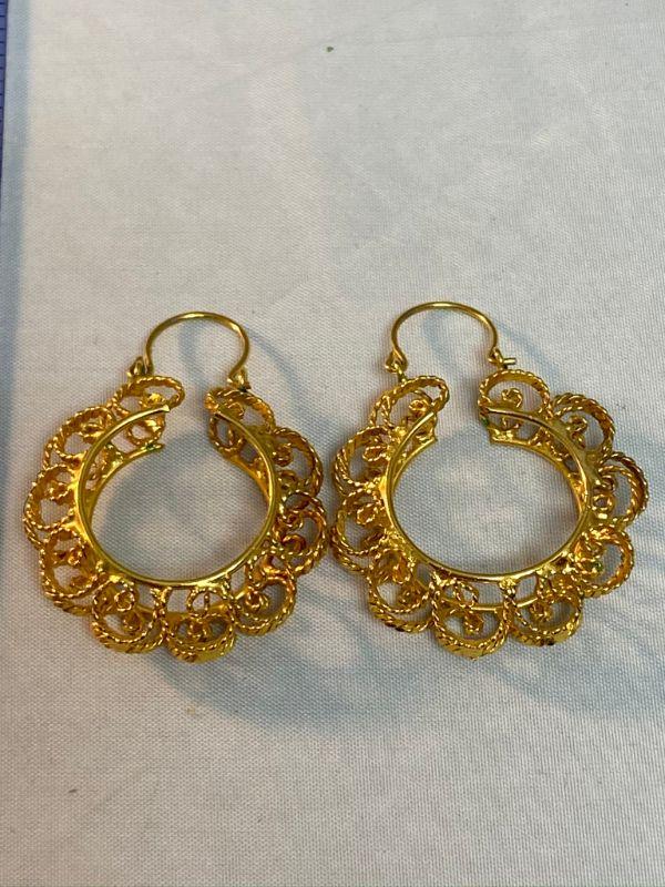 Beautiful goldtone hoop earrings. Delicate Filigree Design. 1.5" total size.