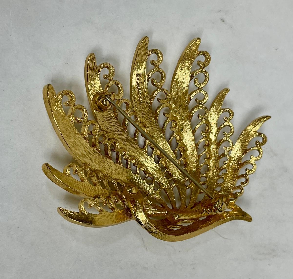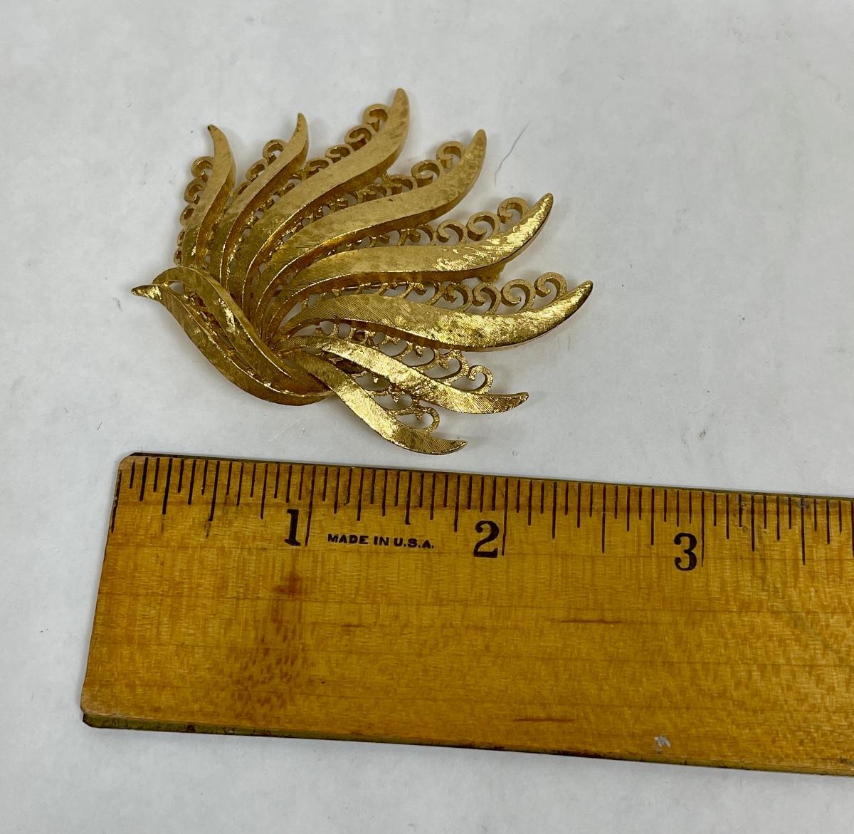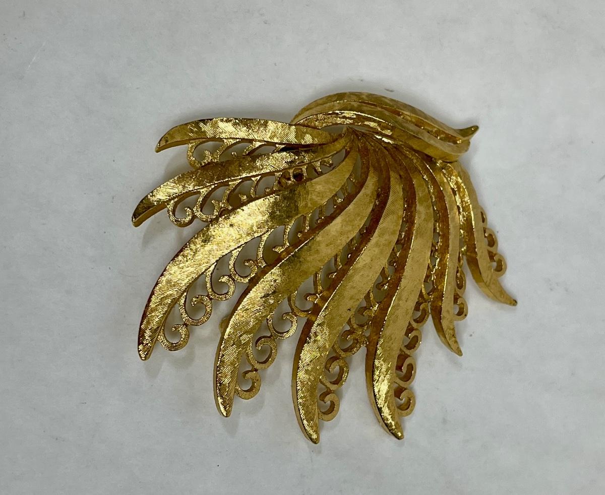 Monet Gold-Tone Frond Leaf Brooch Pin signed