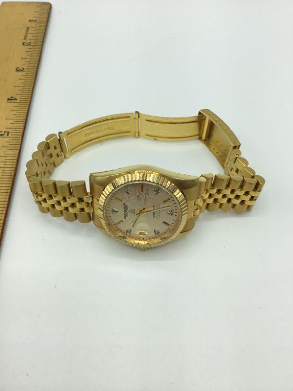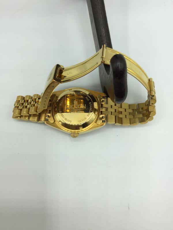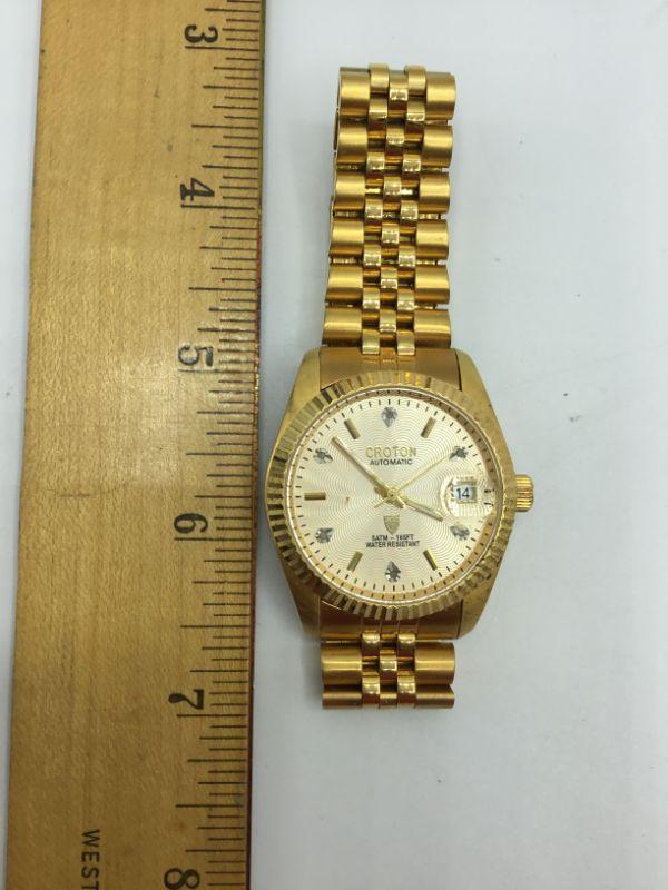 Goldtone Croton Men's Automatic watch. Water Resistant. Has date keeper. Good Condition. Adjustable link band.