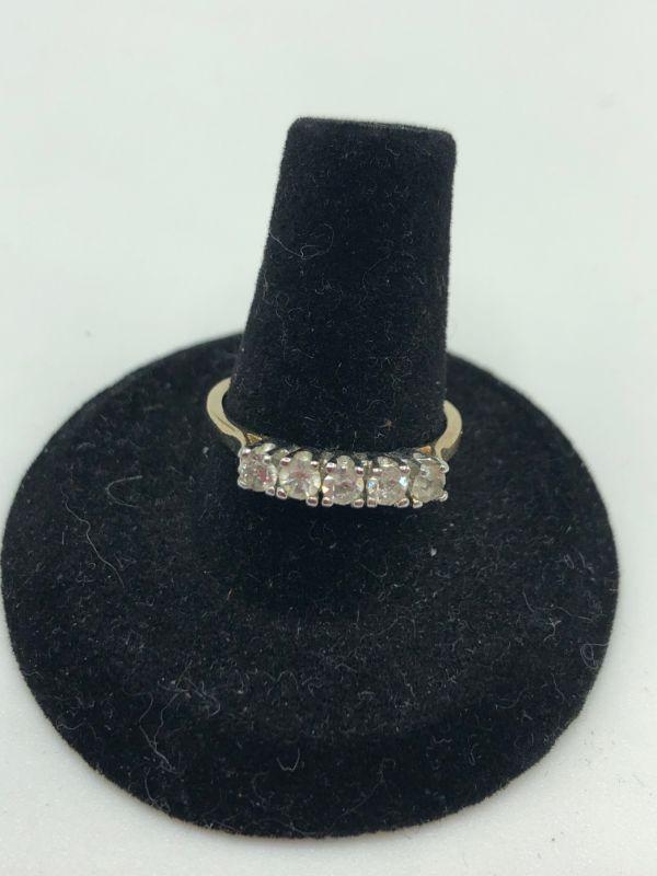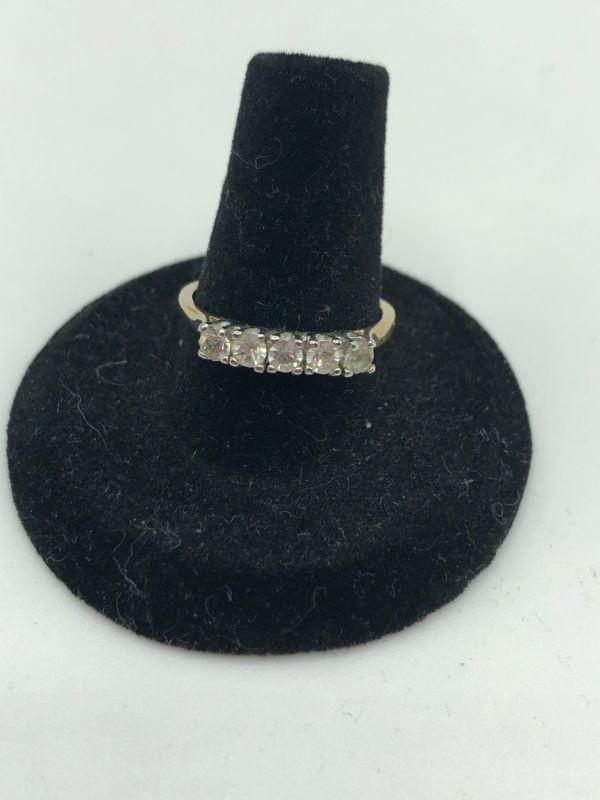 Size 8 CZ Ring. Goldtone. Has 5 stones.