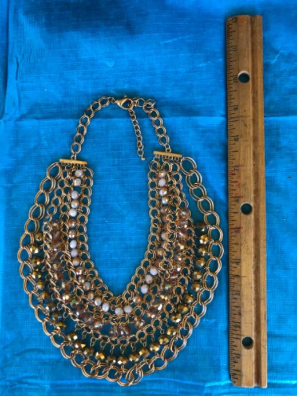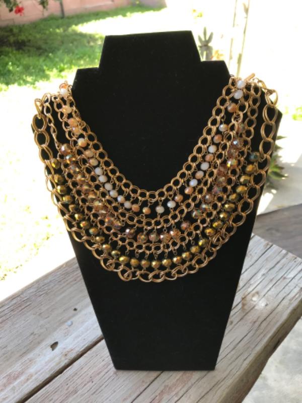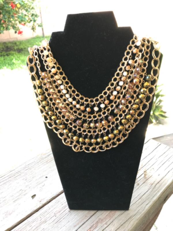 Goldtone Multistrand Statement Necklace. A great mix of links and beads, all connected like a mesh. A little on the heavy side.