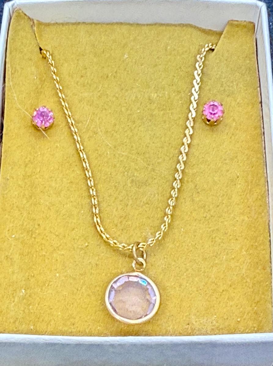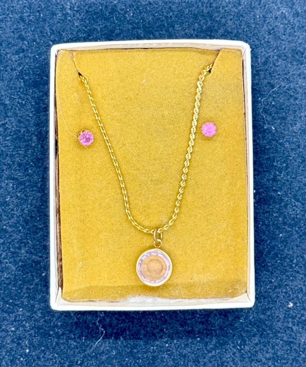 Gold-tone Neclace with Rose Quartz Pendant and Matching Earrings