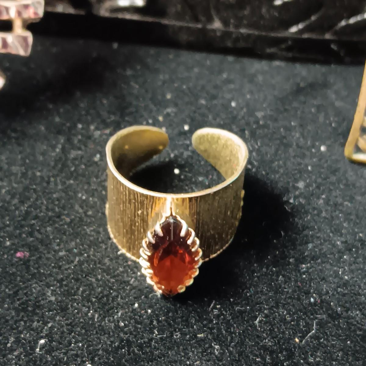 GOLD-TONE PARKLANE NECKLACE, 2 BROOCHES AND A RING