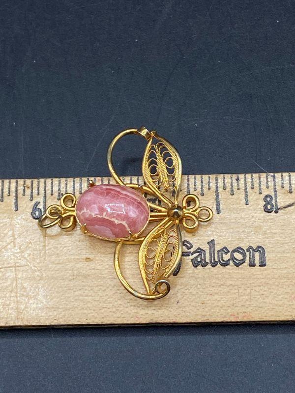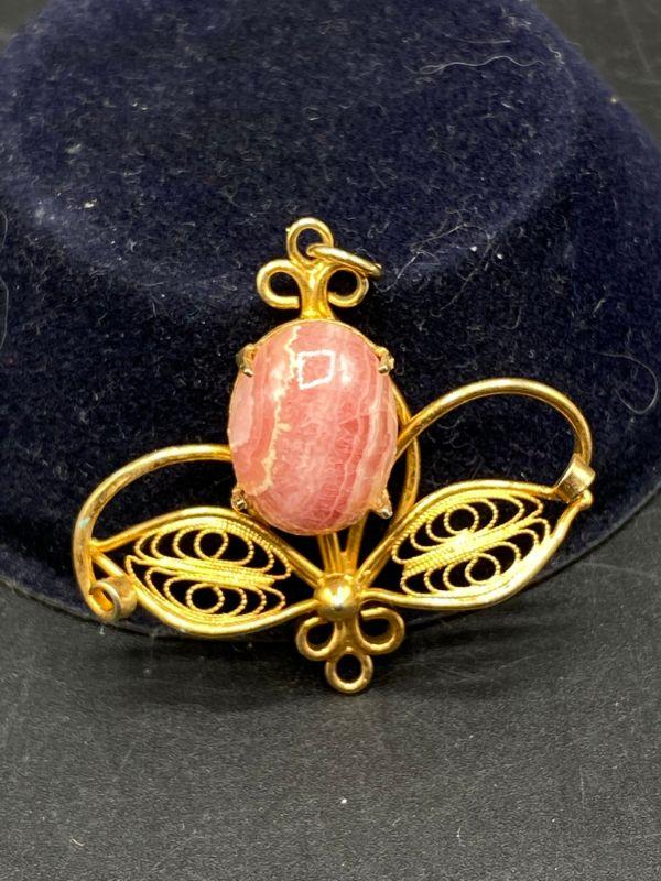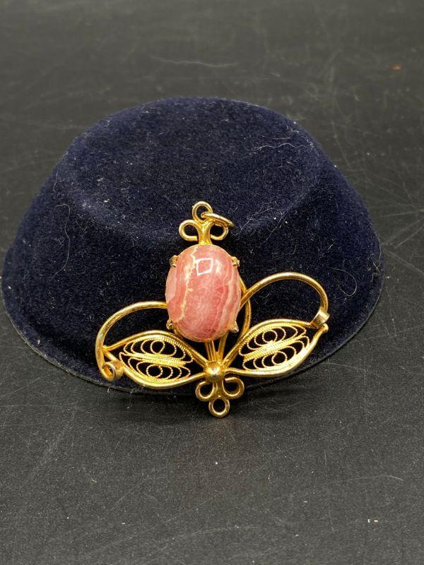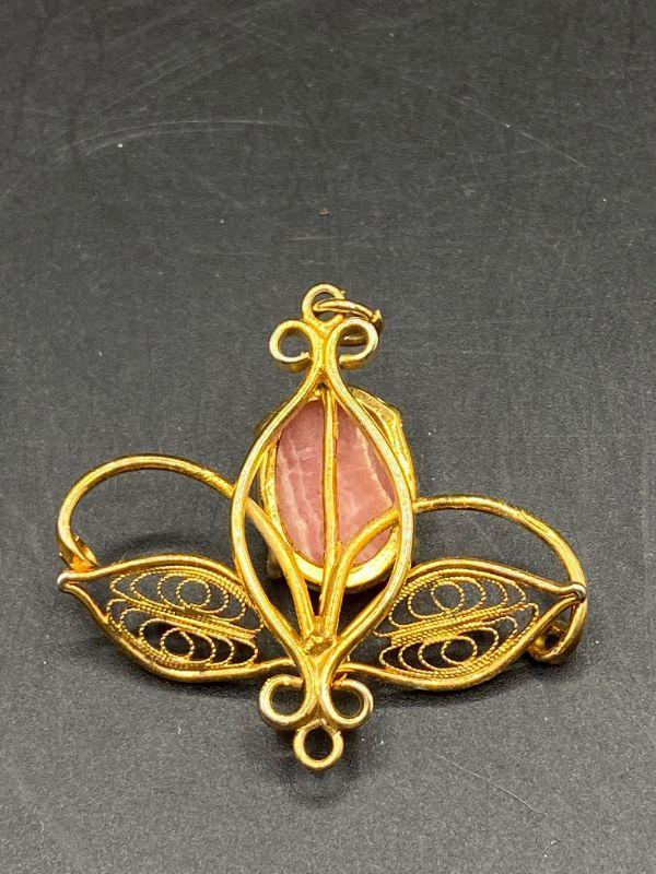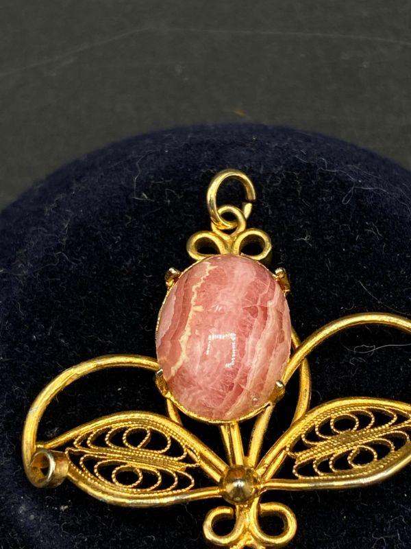 Goldtone Pink Quartz Agate Pendant