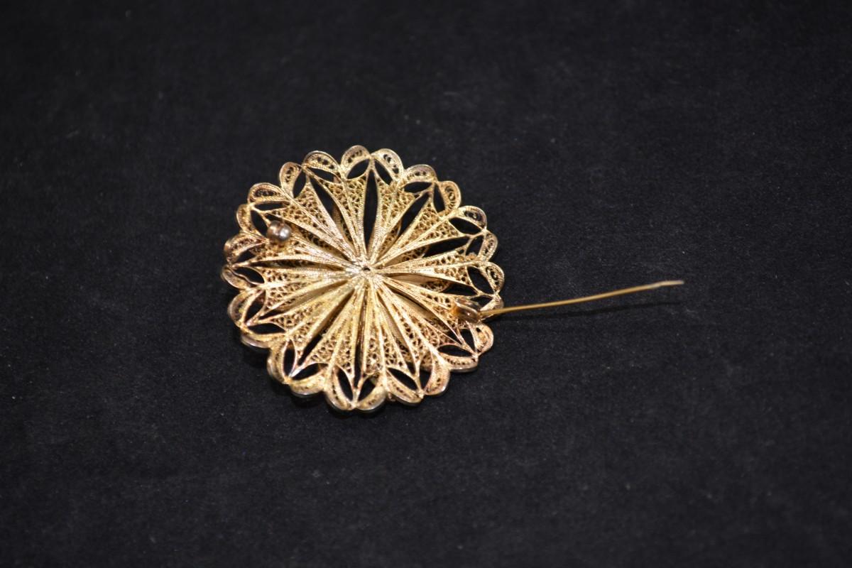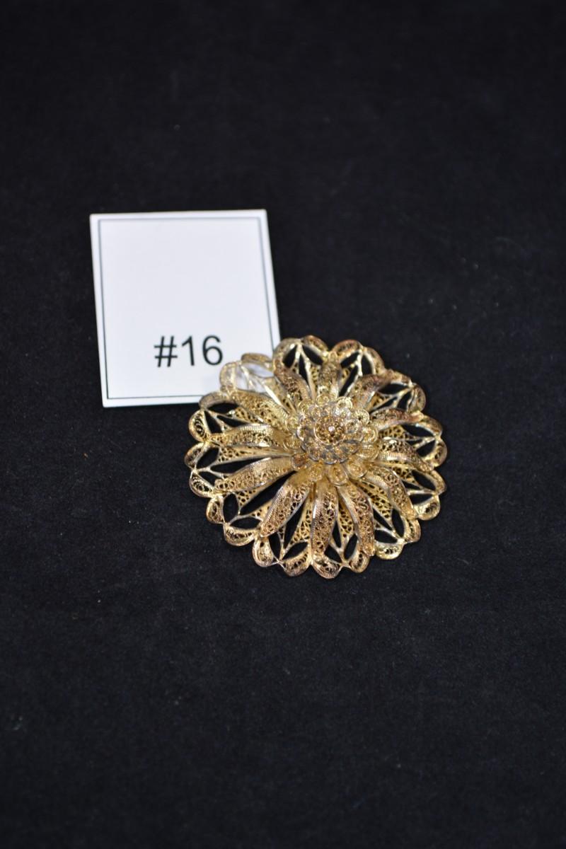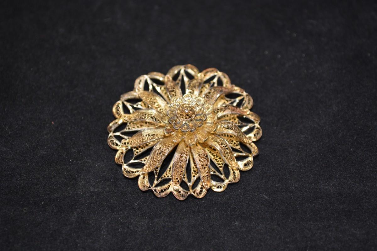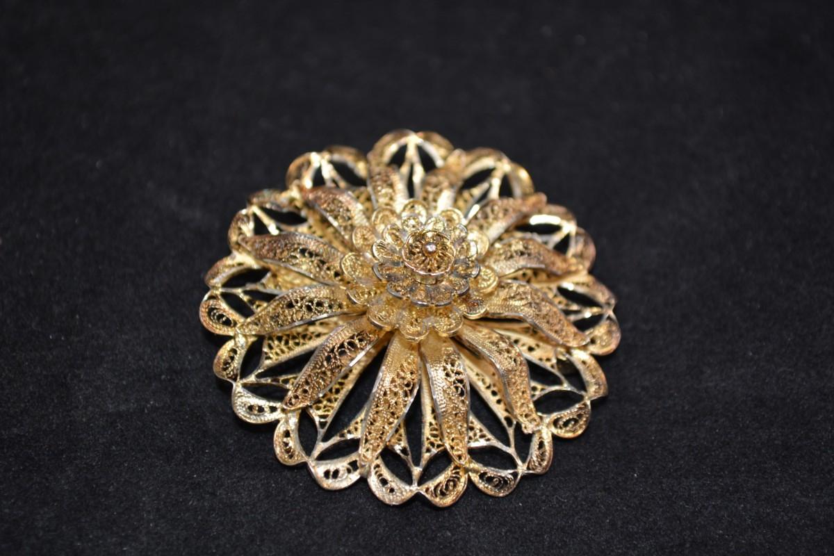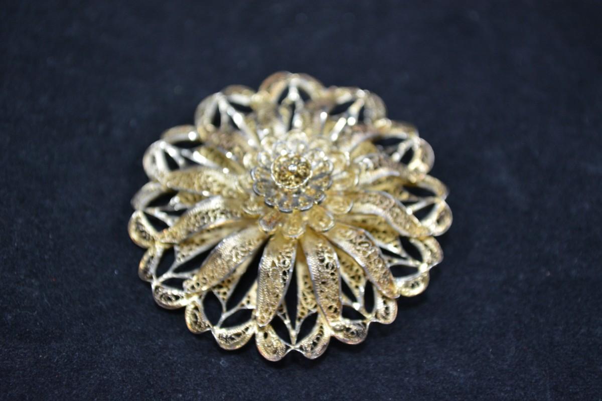 Gold-Tone Russian Silver Filigree Brooch 13.1g