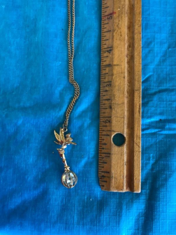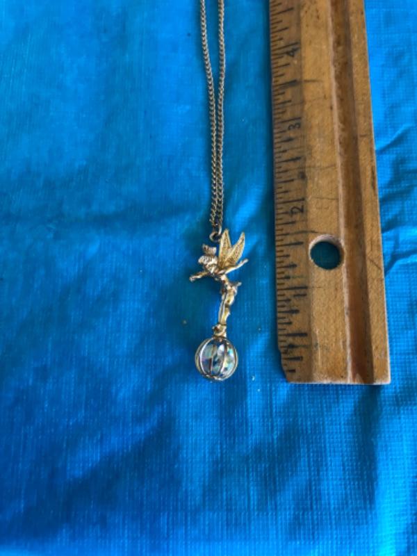Cute pale goldtone Tinkerbell charm pendant necklace.