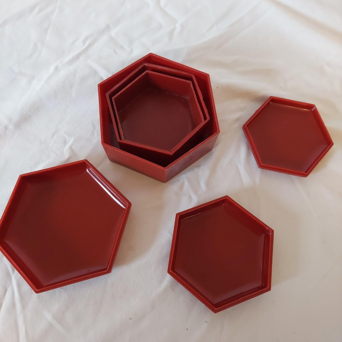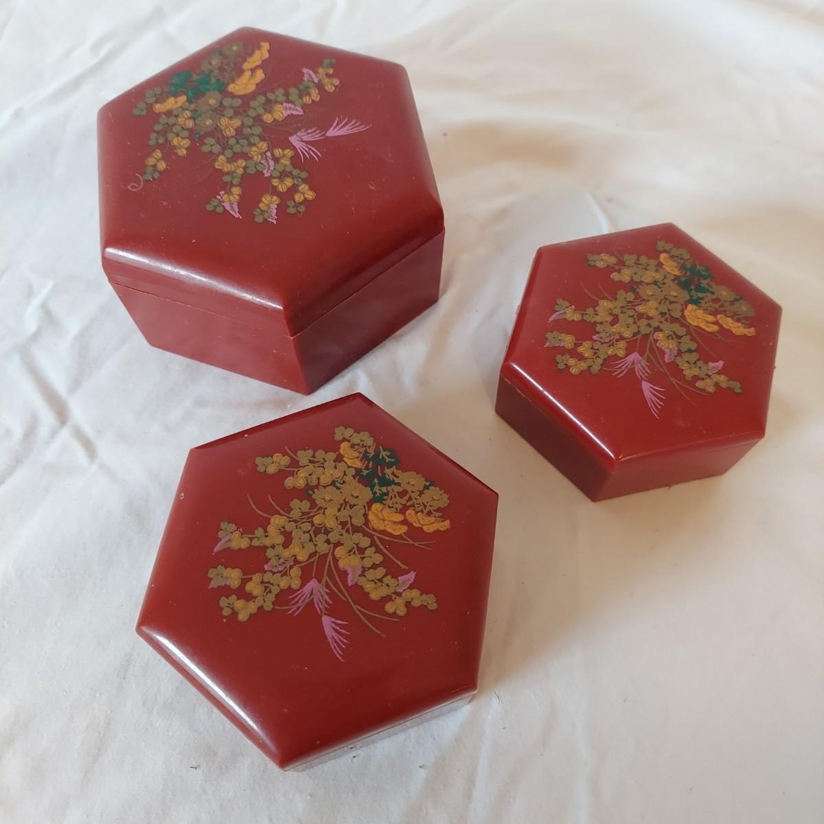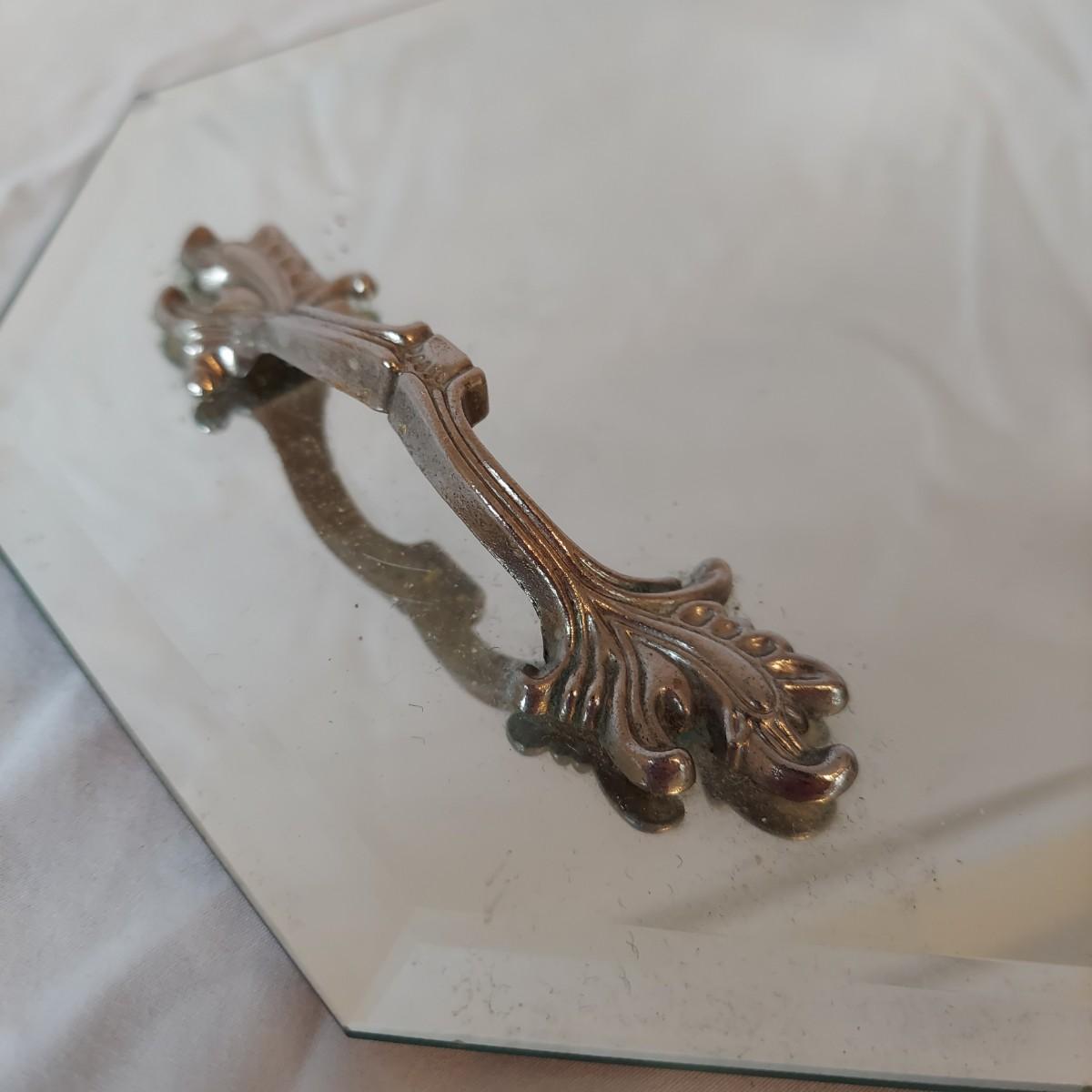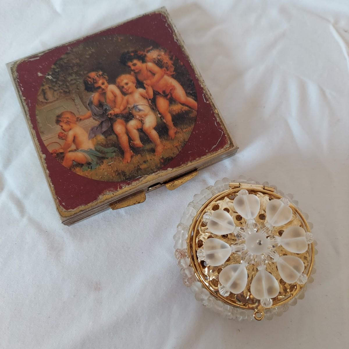 Three mirrror trays. The large rectangular gold frame mirror is 10.5” x 15.5”. Also includes three small trinkets boxes and a set of plastic nesting boxes. Plus a vintage brass tone metal valet stand. The small, blue piece shown in the group photo is nonlonger available. Please see photos for details. Shipping available