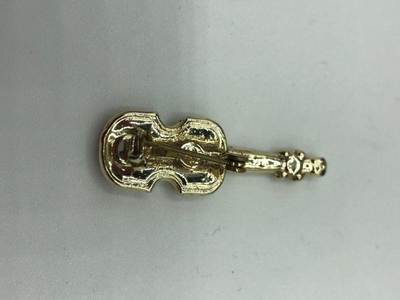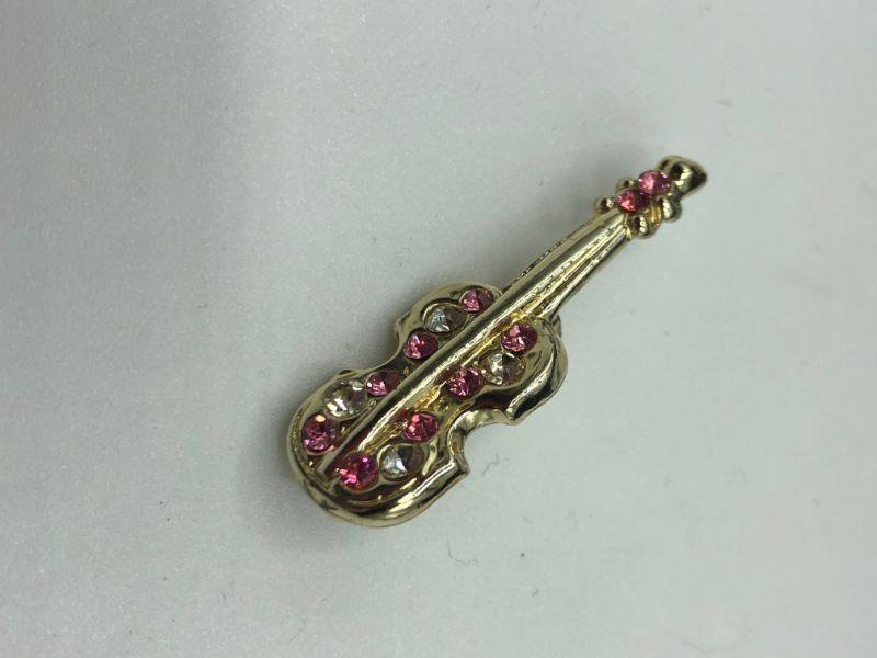 Goldtone Violin with Pink & White Rhinestones Brooch Pin