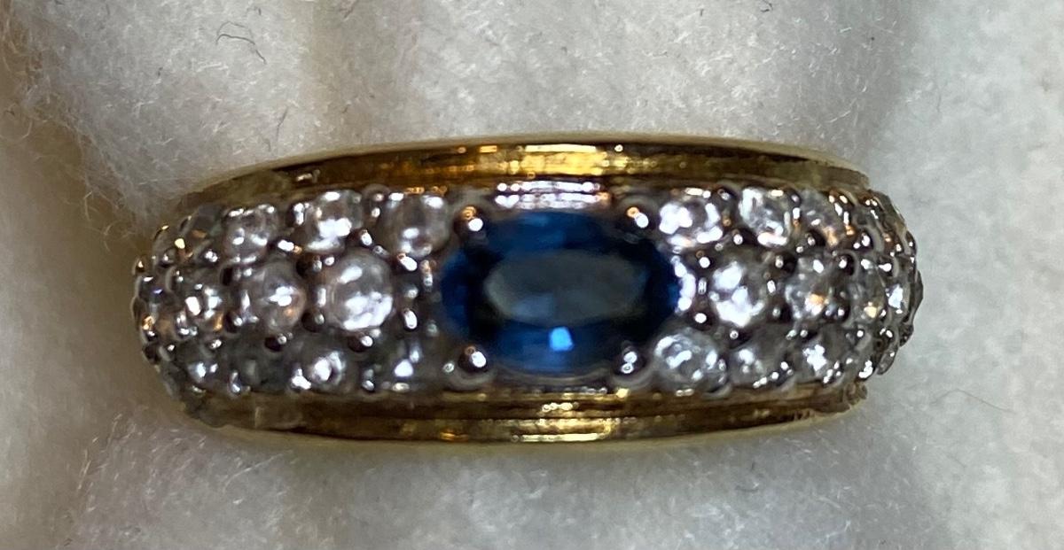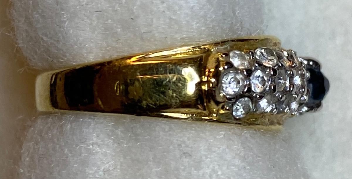 Goldtone with blue stone - size 5.5